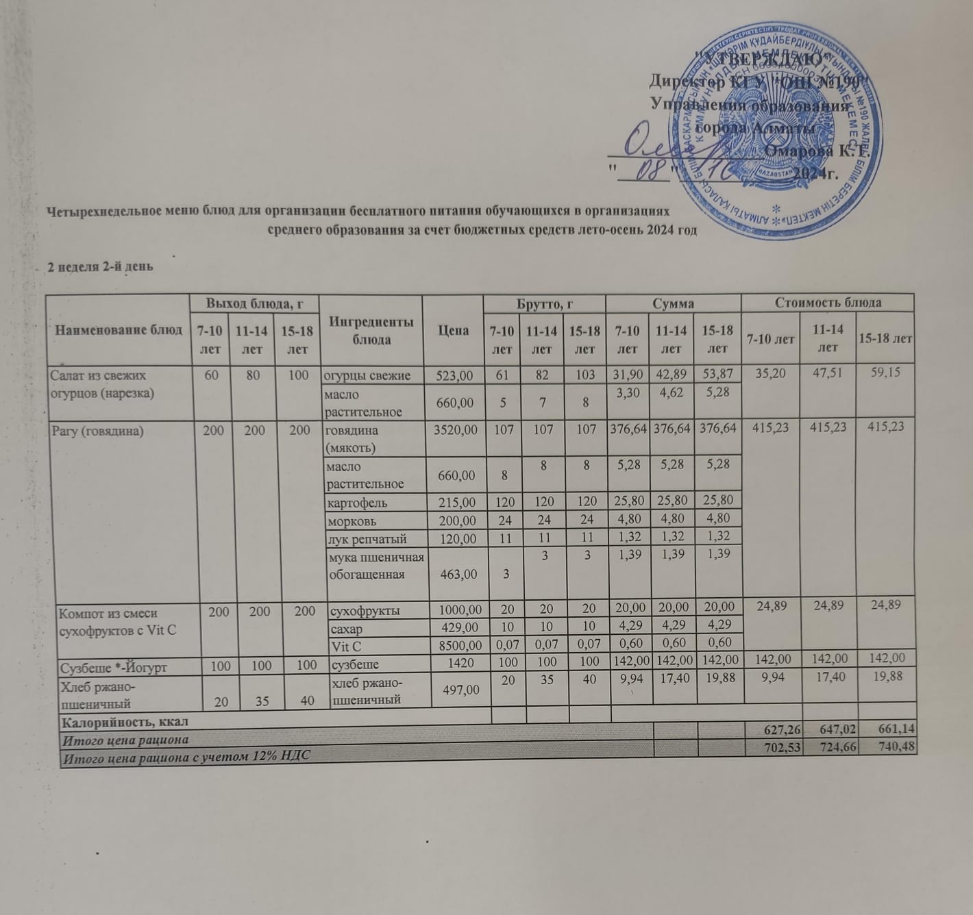 Меню 2 апта 2 күн... Меню 2 неделя 2 день