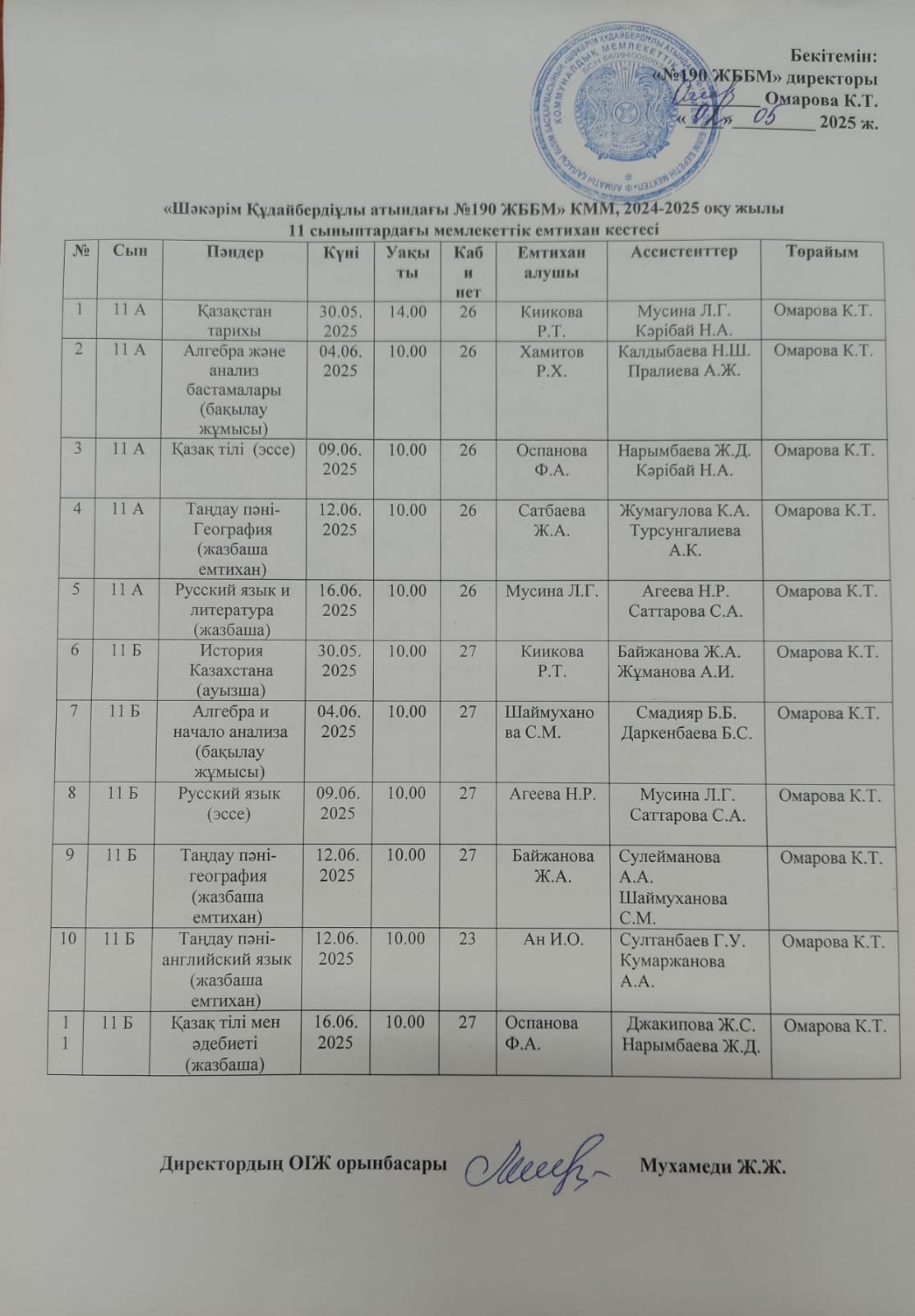 » Мемлекеттік емтихан кестесі 2025 жыл (11 сынып)