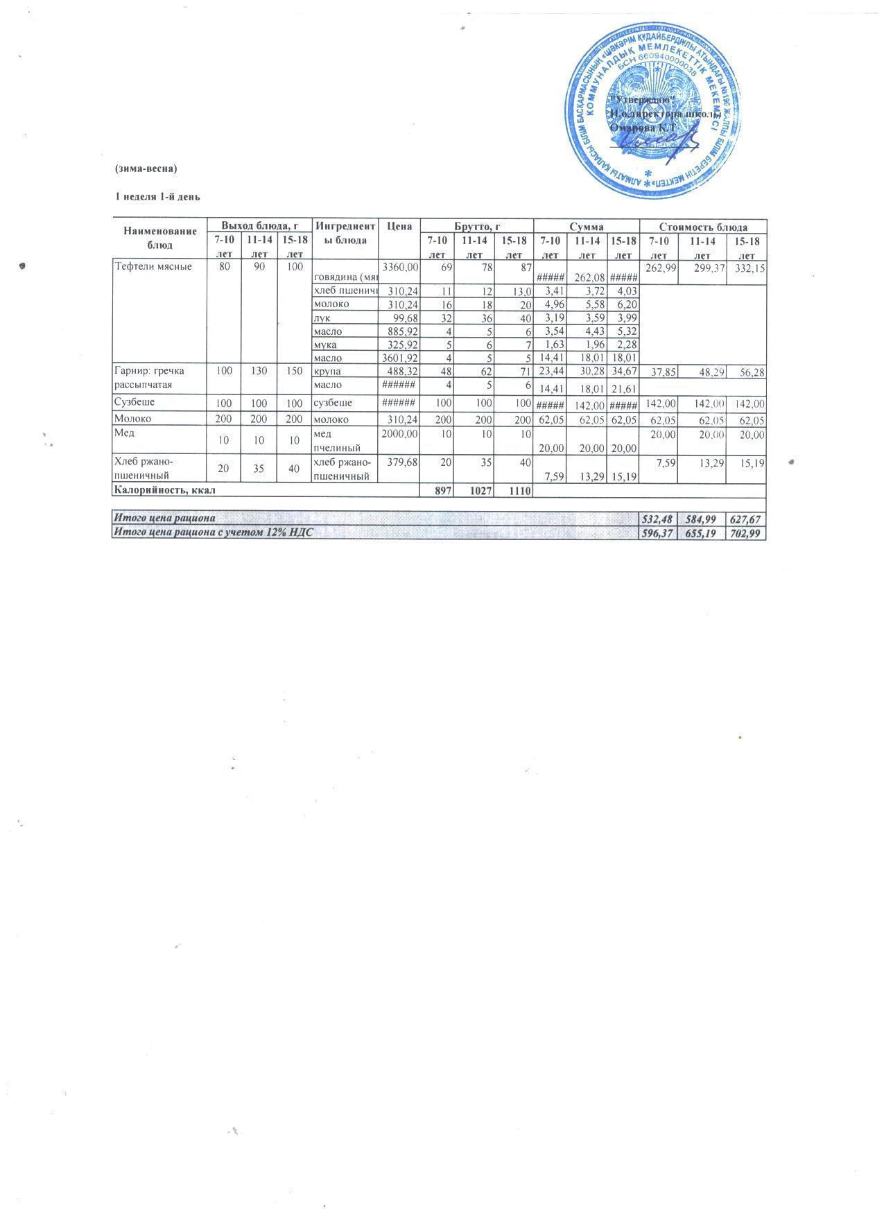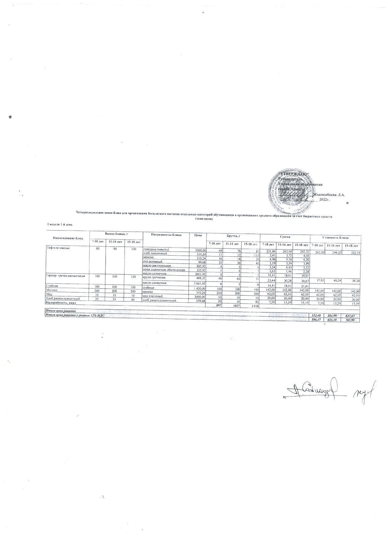 2021-2022 жылдарға арналған Қыс-Көктем мәзірі 1 тағаммен және сузбешемен