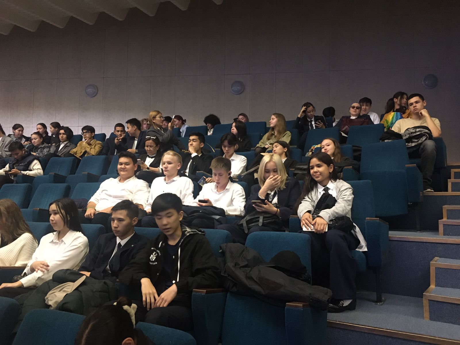 Дінмұхамед Ахметұлы Қонаевтің 110 жылдығына орай 9 б және 9 в сыныбы бірігіп, сынып сағатын өткізді. •••••••••••••••••••••••••••••••••••••• 9 б и 9 в класс совместно провели классный час на тему: 110 лет со дня рождения Д.А.Қонаева