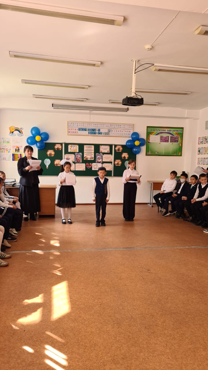 1 қазан – Қарттар күніне орай 4 "А" және 4 "Б" сыныптарының оқушылары сыныптан тыс іс-шара өткізді. Шара барысында балалар ата-әжелерімізге деген құрмет пен ілтипаттарын көрсетіп, оларға арналған өлеңдер оқып, әндер шырқады. Әрбір оқушы үлкендерге алғыстарын білдіріп, жүрекжарды тілектерін айтты. Қарттарымыздың тәжірибесі мен даналығын бағалап, олардың қоғамдағы орны ерекше екенін тағы бір мәрте еске салдық. Мерекелік шара жылы көңіл-күймен өтті!