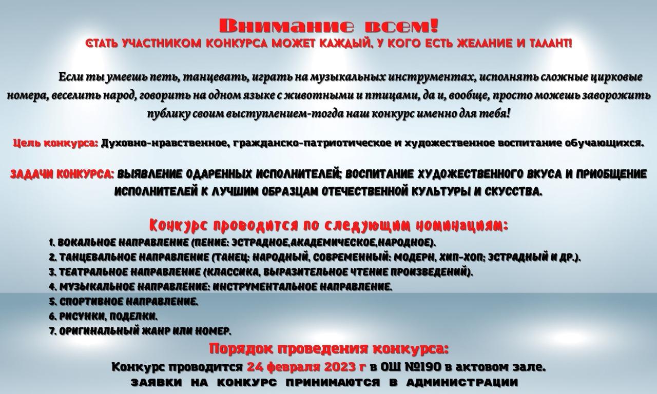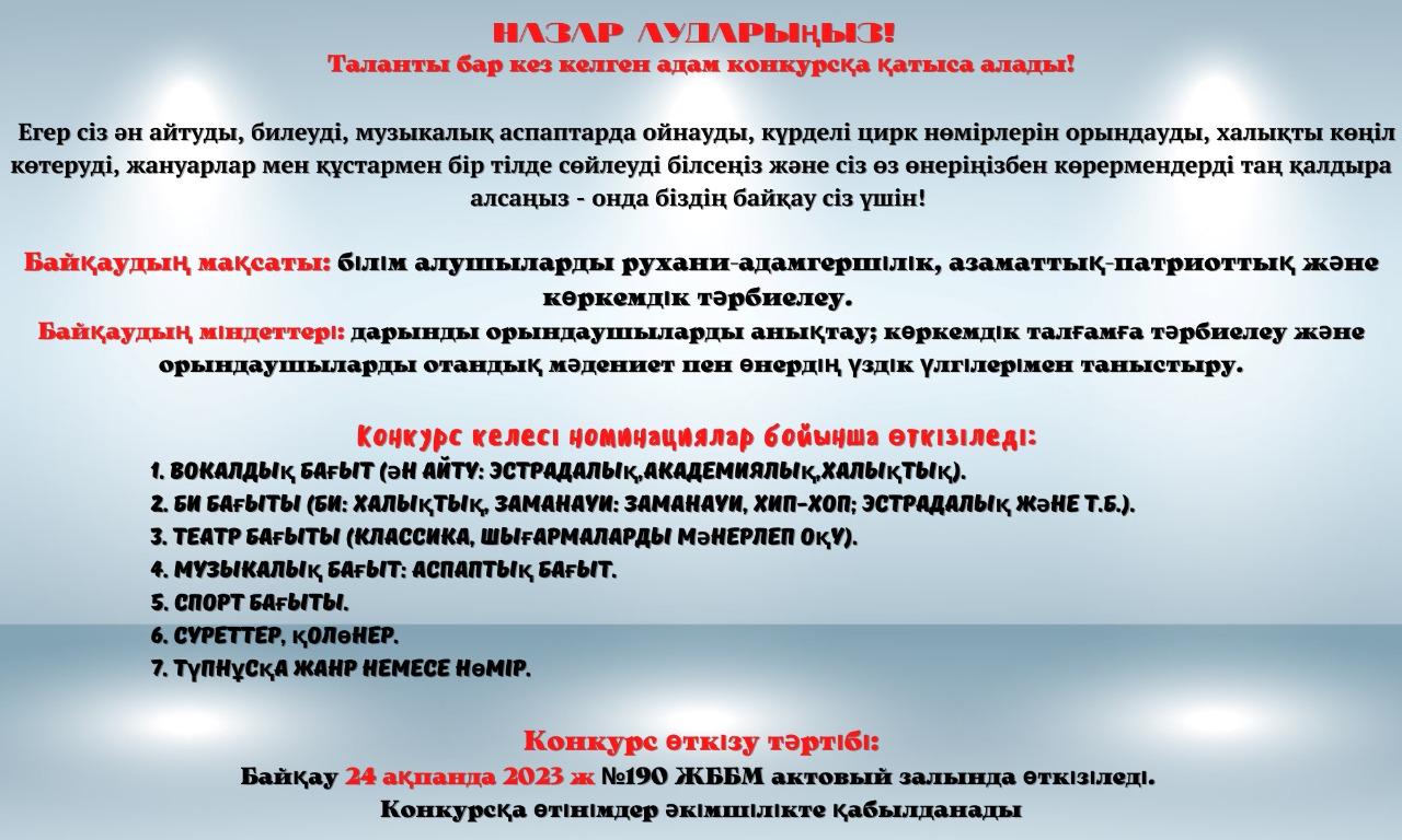 21 қаңтар 2023 0 1 2 3 4 5 НАЗАР АУДАРЫҢЫЗ!!! Алло, біз таланттарды іздейміз!.............................ВНИМАНИЕ!!! Алло, мы ищем таланты!