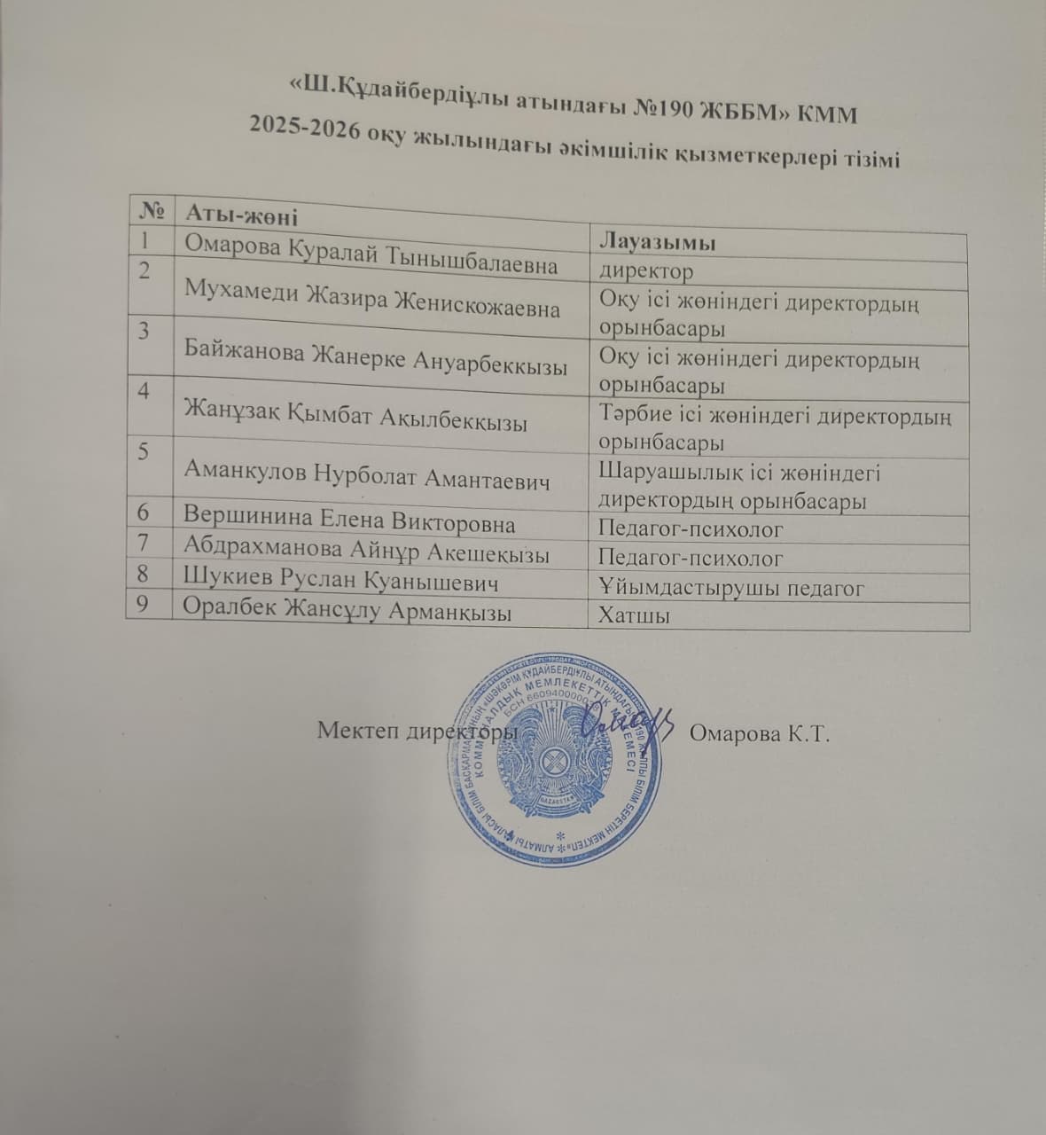 2025-2026 оқу жылындағы әкімшілік тізімі