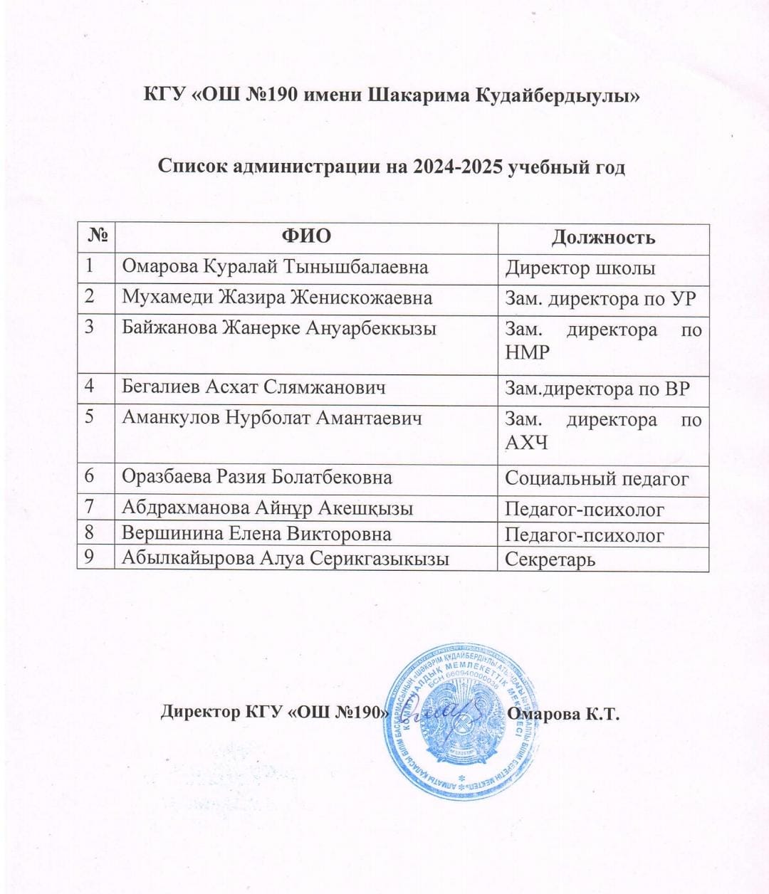 Мектеп әкімшілігі 2024-2025 оқу жылы