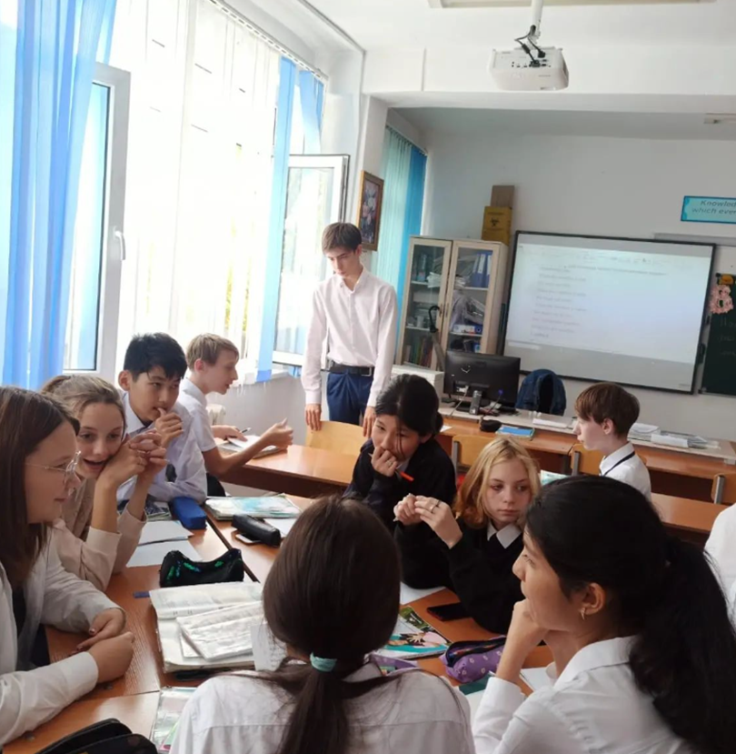 23 қыркүйек 2022 0 1 2 3 4 5 Ағылшын тілі пәні бойынша викториналық сайыс сабағы 23.09.2022 жылы тілдер онкүндігі аясында ағылшын тілі сабағында викториналық сайыс сабағы өткізілді. Бұл іс-шараға 8-сынып оқушылары қатысты.