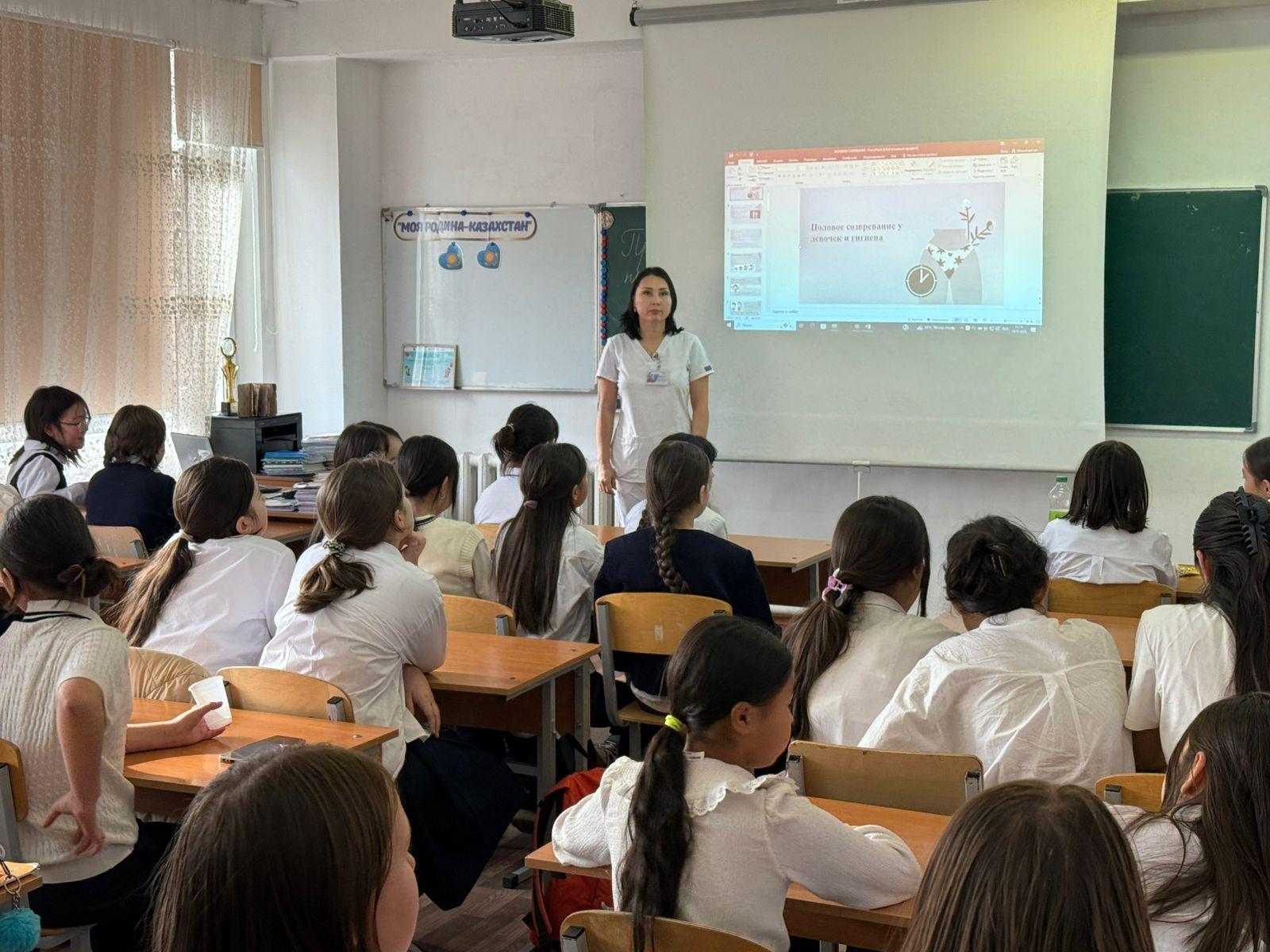 19 қараша 2025 0 1 2 3 4 5 Қыздар жиналысы. №17 қалалық поликлиникасының гинеколог-дәрігері Байботаева Р., Еркешова З.Е. қыздарға "Жыныстық жетілу, гигиена" тақырыбында лекция өткізді.