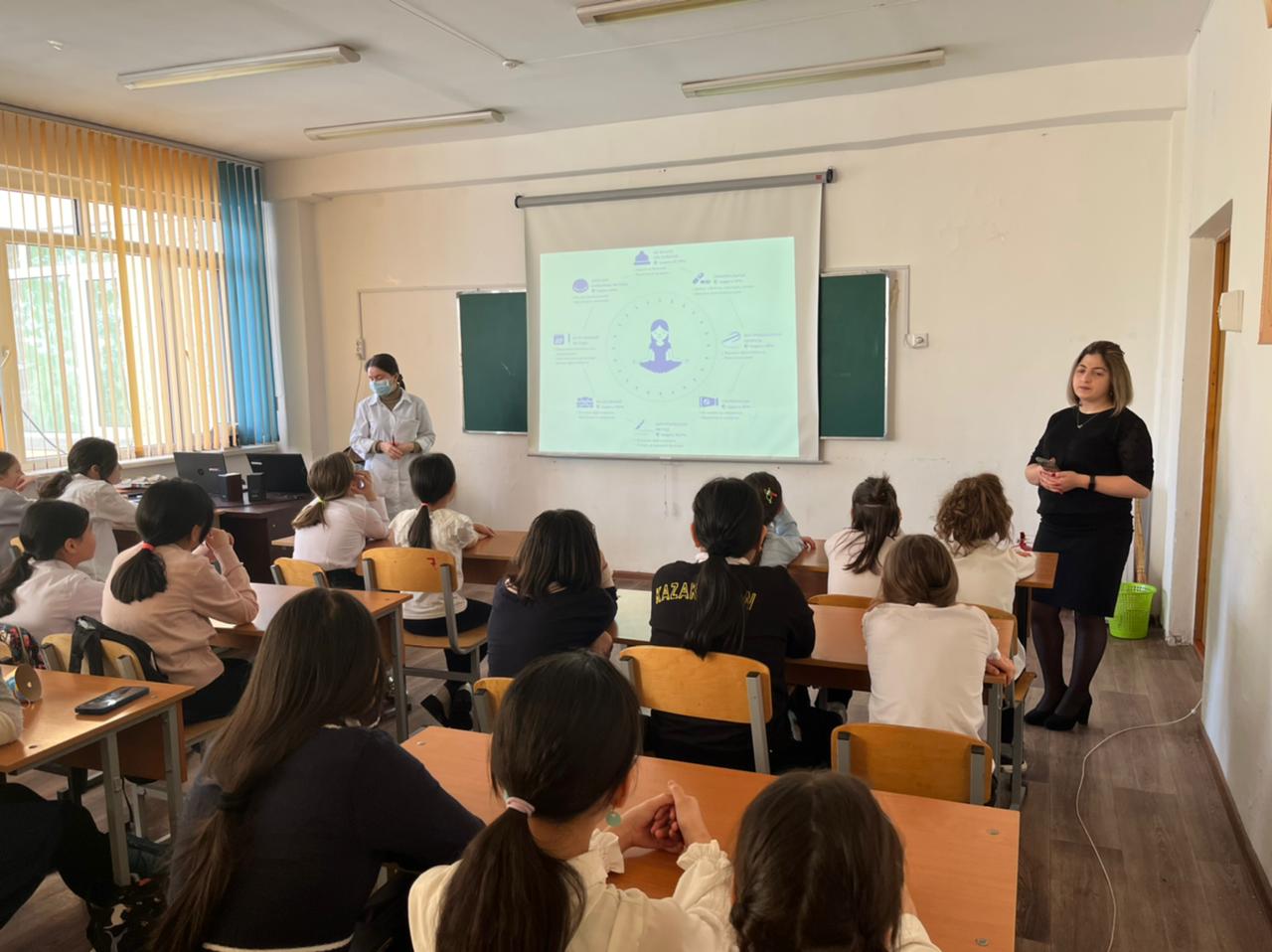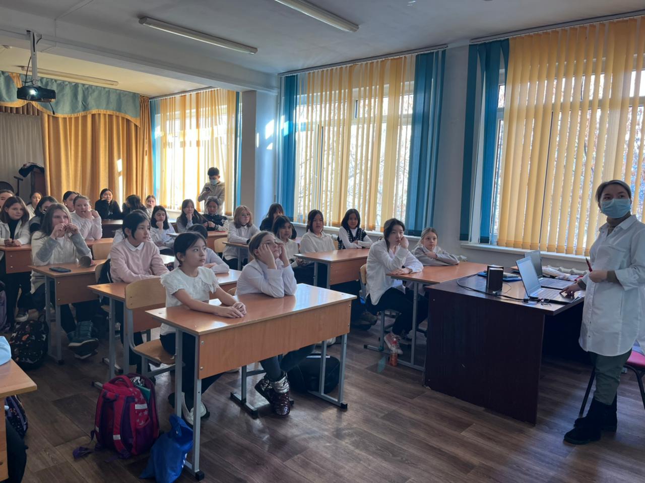 Бостандық ауданының №17 қалалық емханасымен бірлесіп дәрігер-гинекологы-Торебаева Н.А., психологы – Искакова А.С., соц.қызметкері – Р. Әкімбек, № 190 ЖББМ тәлімгерлері-А. А. Сүлейманова, К. А. Жұмағұлова "Жыныстық тәрбие және жеке гигиена"