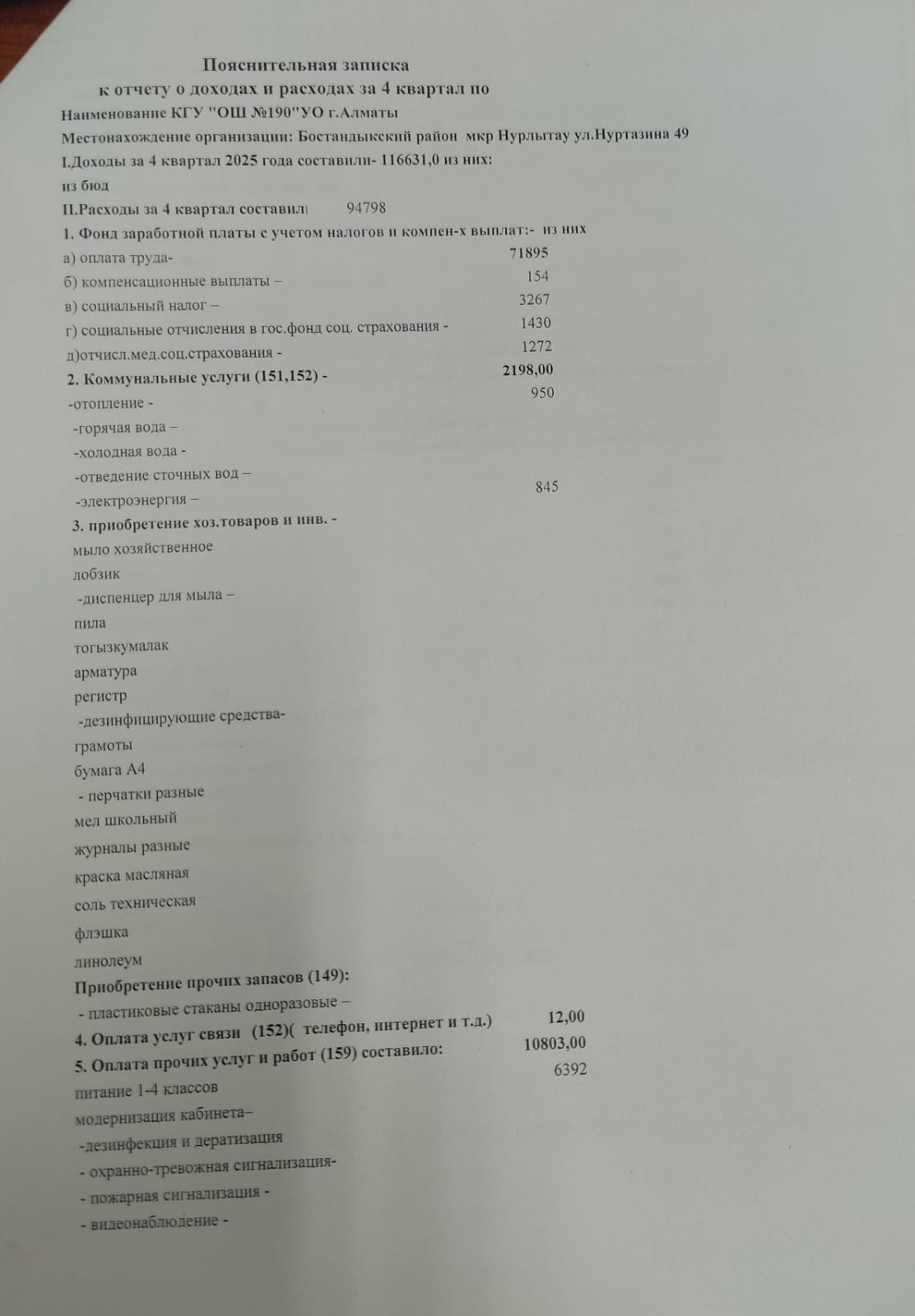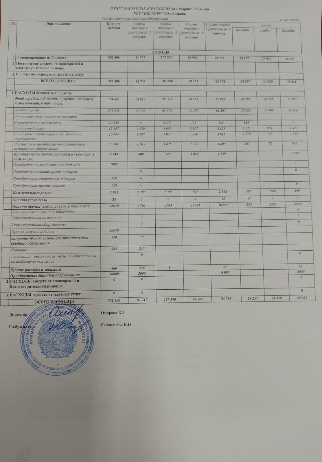 » 2025 жылғы 4 тоқсандағы кірістер мен шығыстар туралы