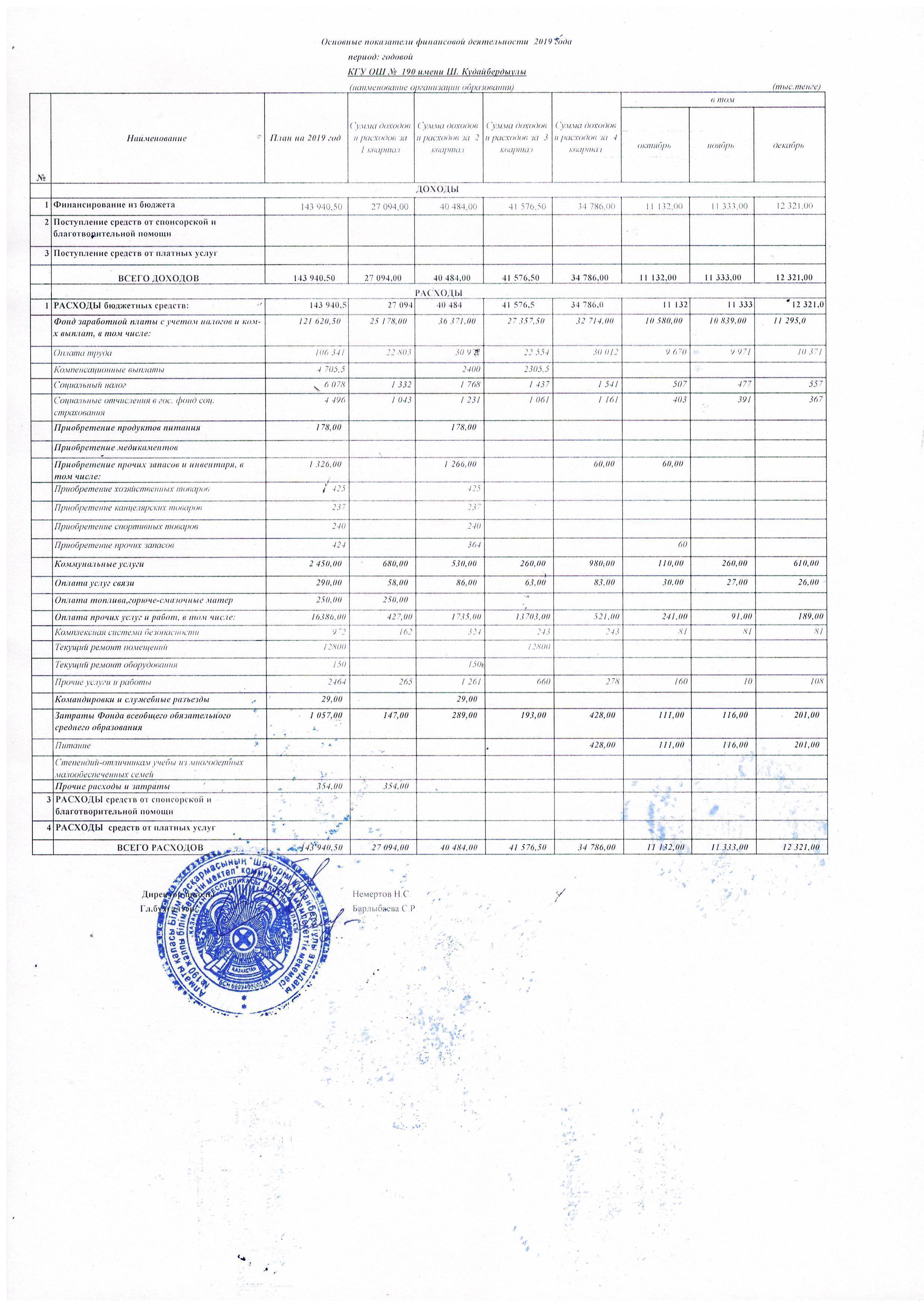 » Основные показатели финансовой деятельности 2019г