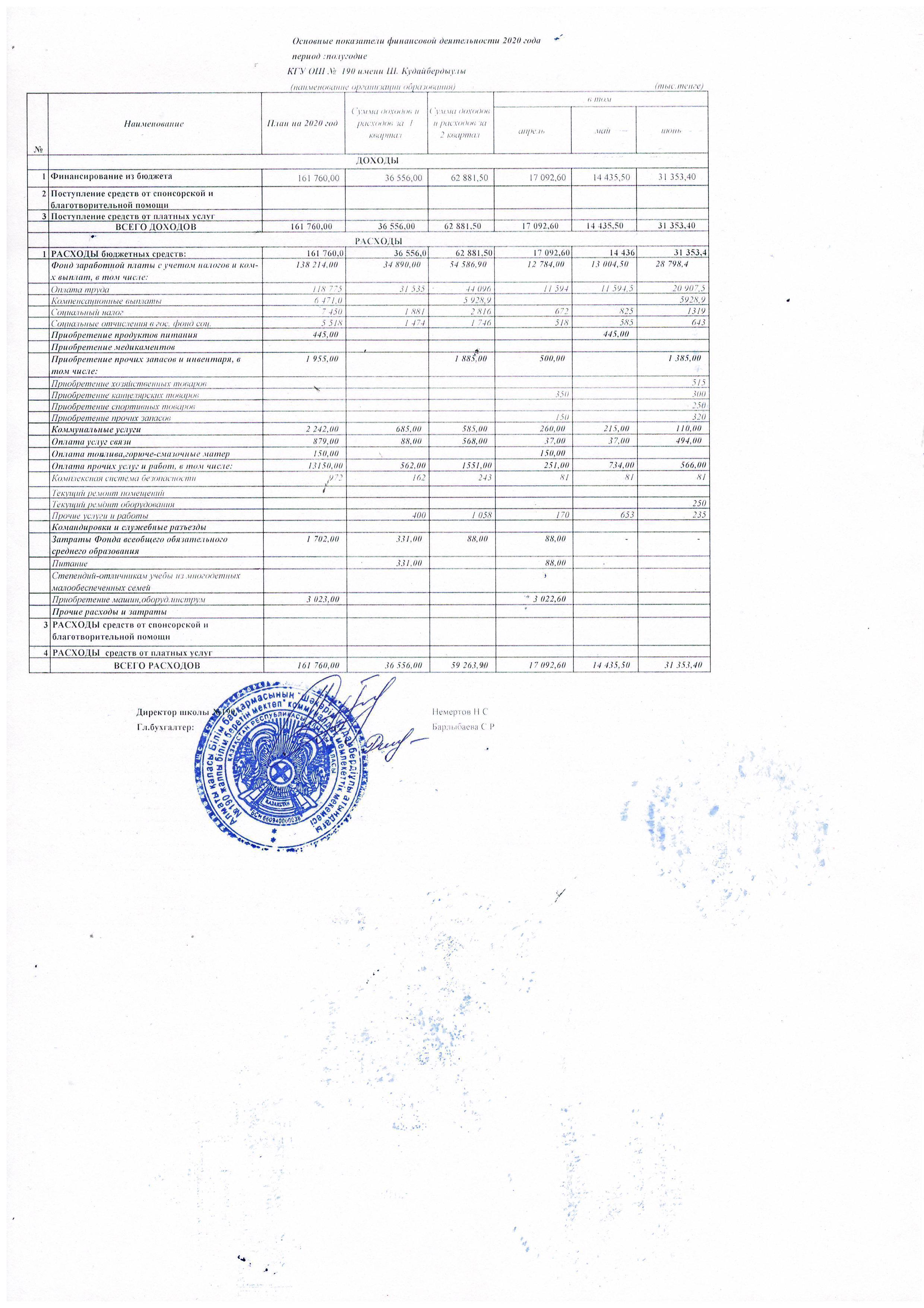 » Қаржылық қызметтің негізгі көрсеткіштері 2020