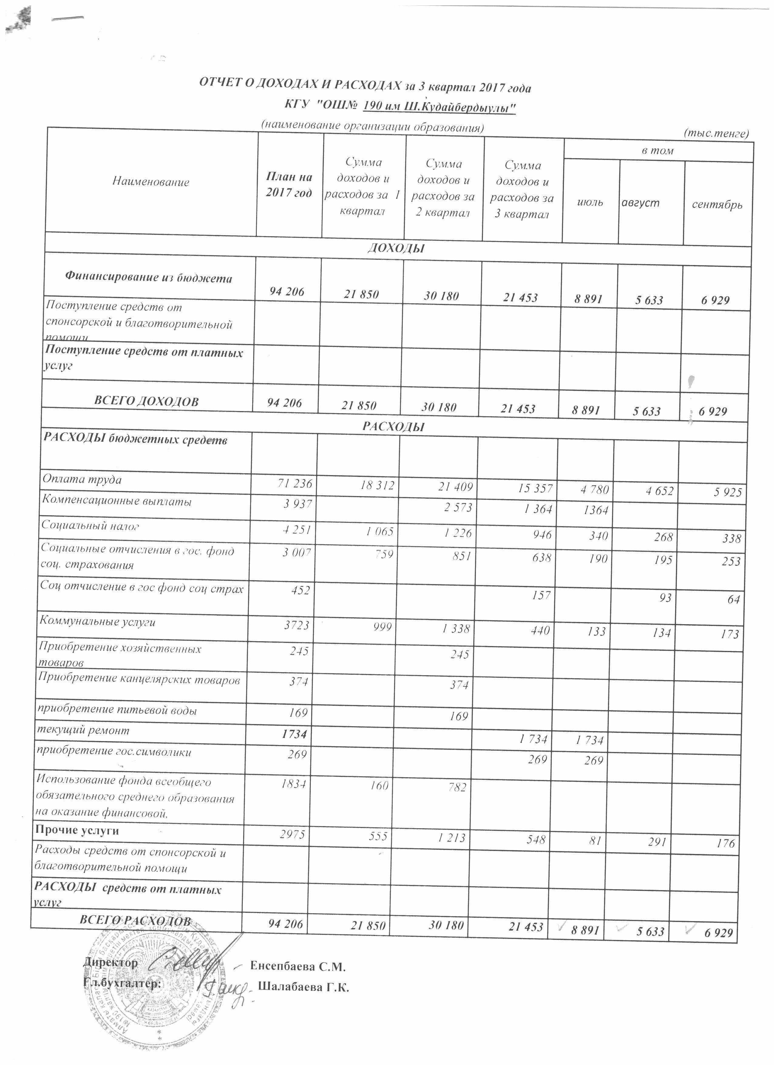 » Отчет о доходах и расходах за 3 квартал 2017 года