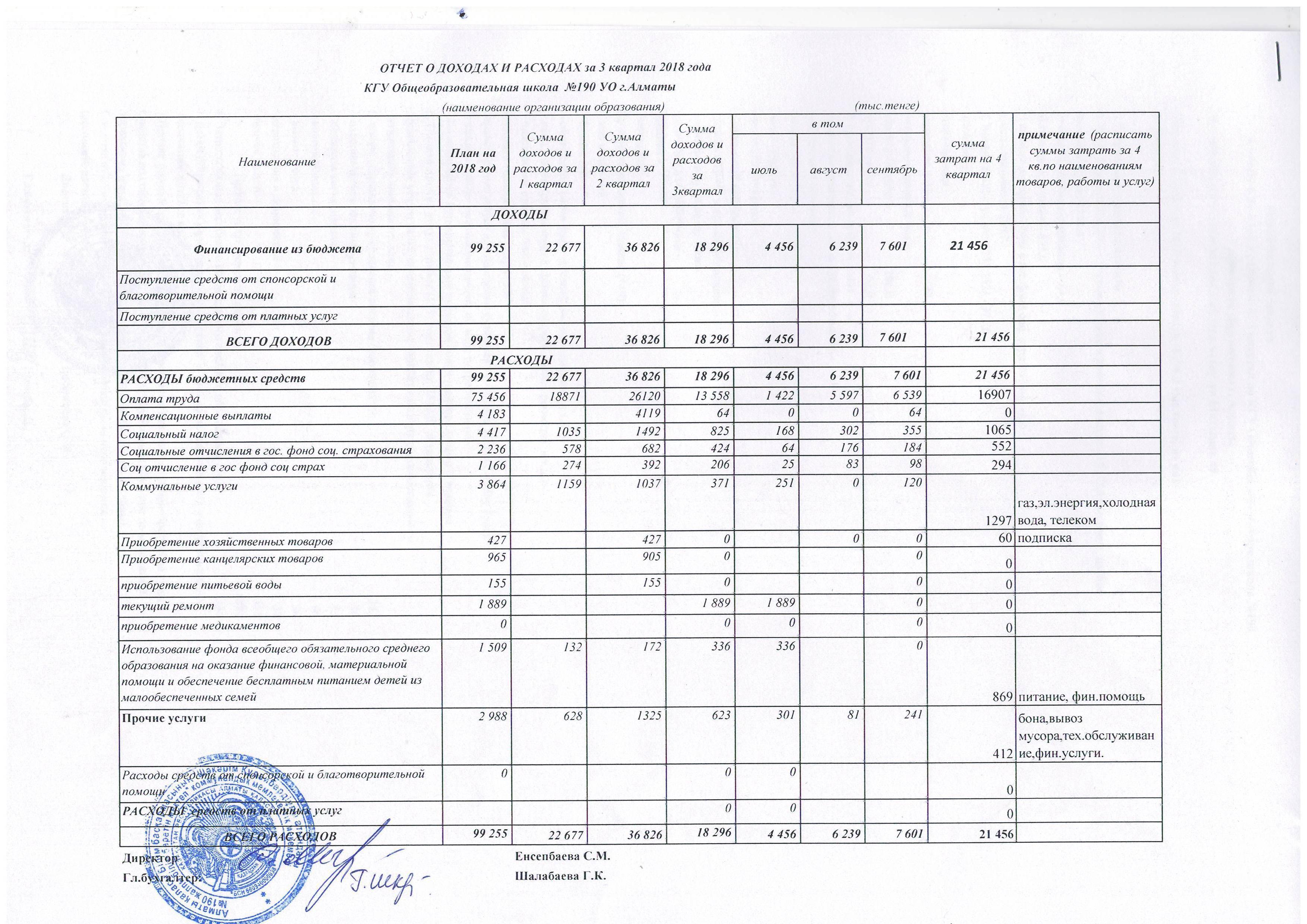 » Отчет о доходах и расходах за 3 кв 2018г
