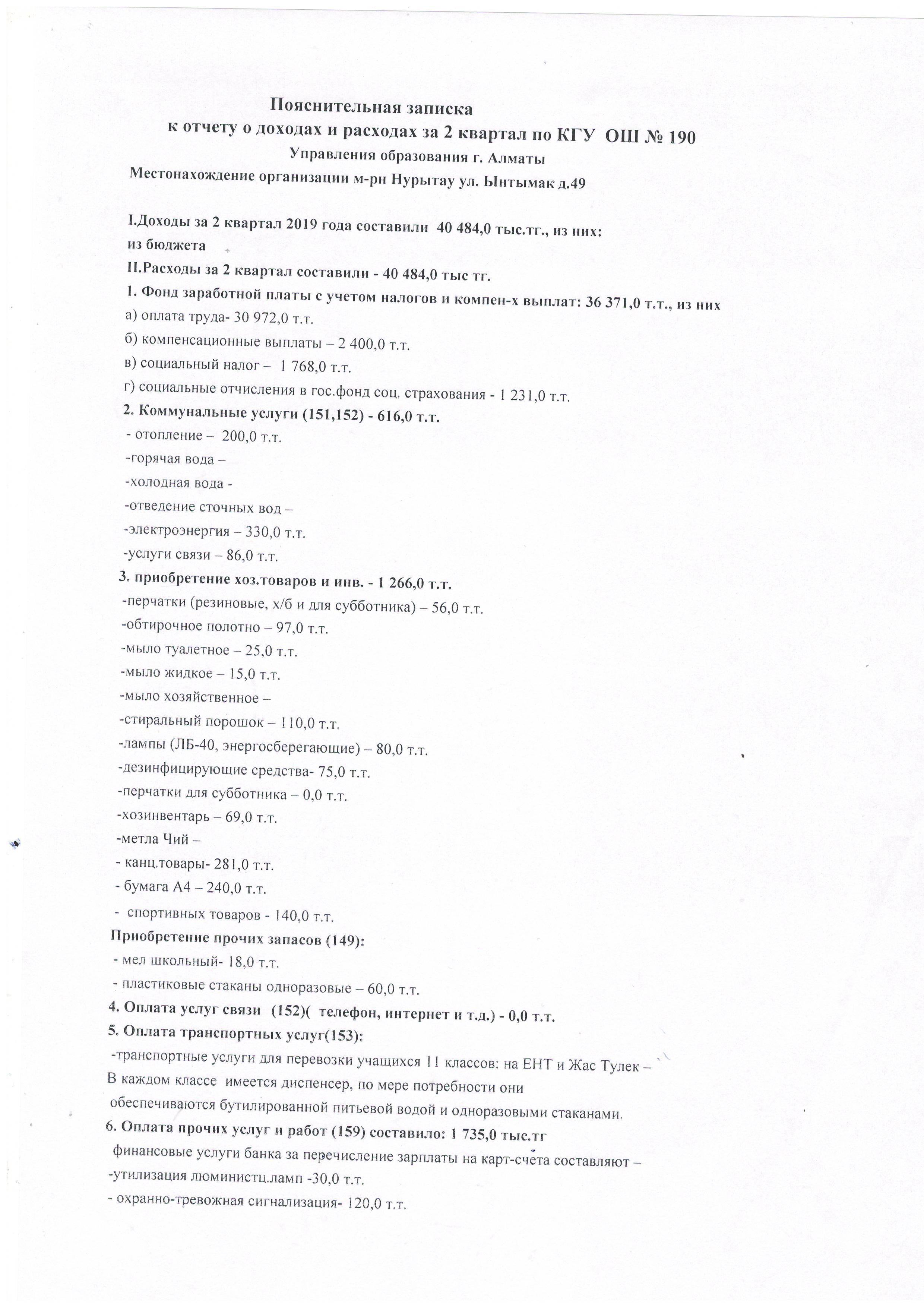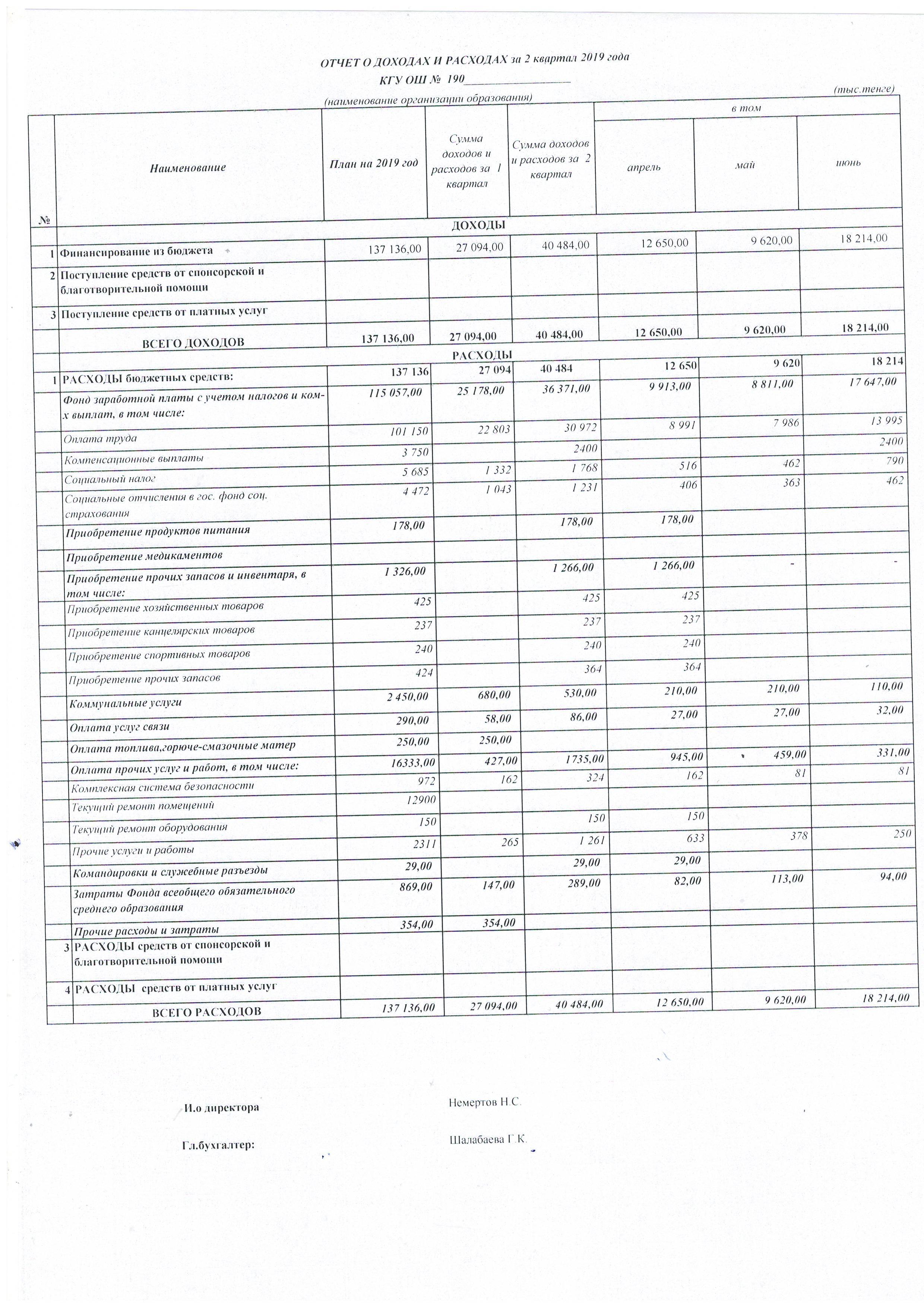» Отчет о доходах и расходах на 2 квартал 2019 г