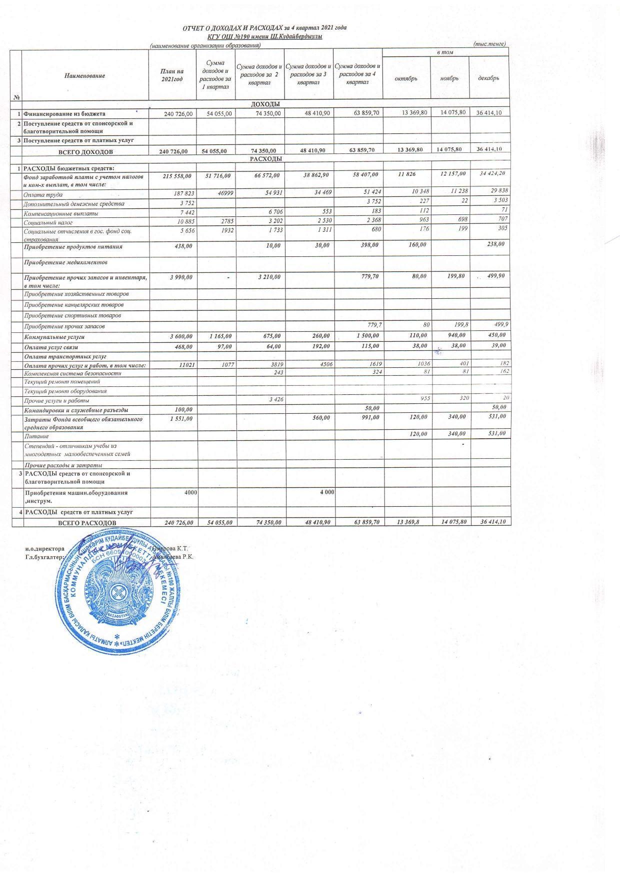 2021 жылғы 4 тоқсандағы кірістер мен шығыстар туралы есеп