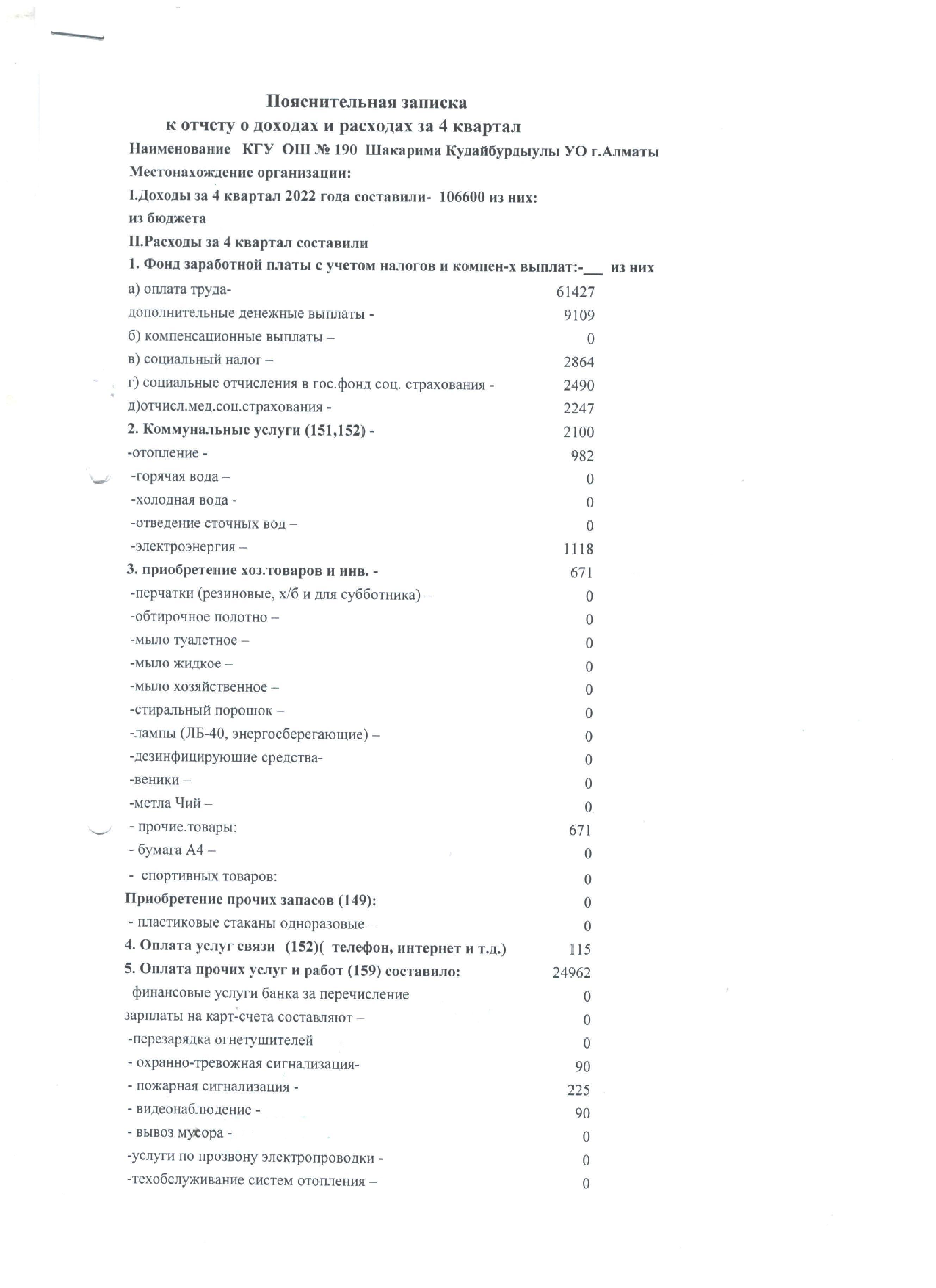06 қаңтар 2023 0 1 2 3 4 5 2022 жылғы 4 тоқсандағы кірістер мен шығыстар туралы есеп.............................Отчет о доходах и расходах на 4 квартал 2022 г
