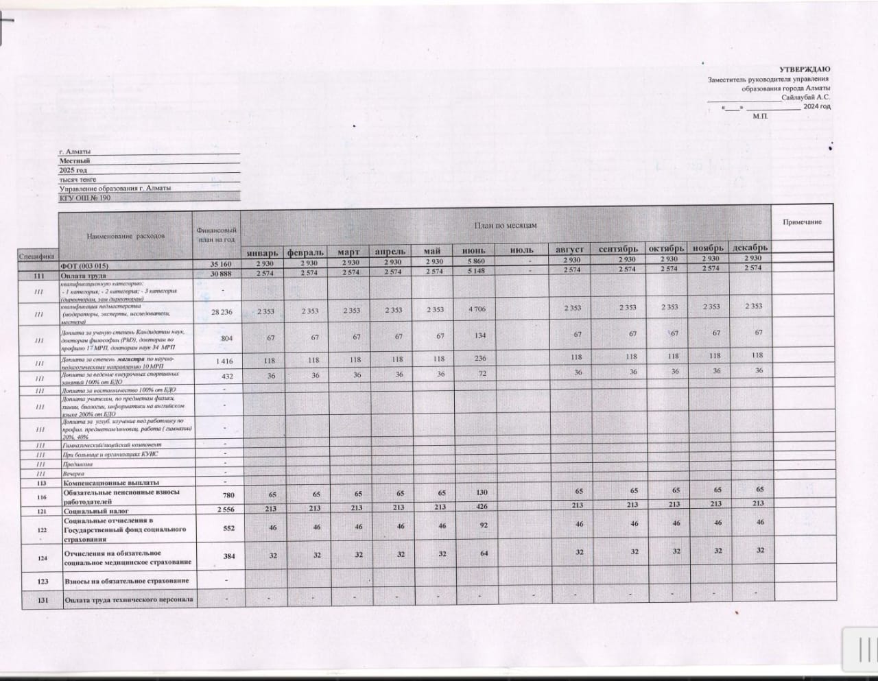 Мемлекеттік мекеменің төлемдер бойынша жеке қаржыландыру жоспары 2020 жыл..............Индивидуальный план финансирования государственного учреждения по платежам 2020 год