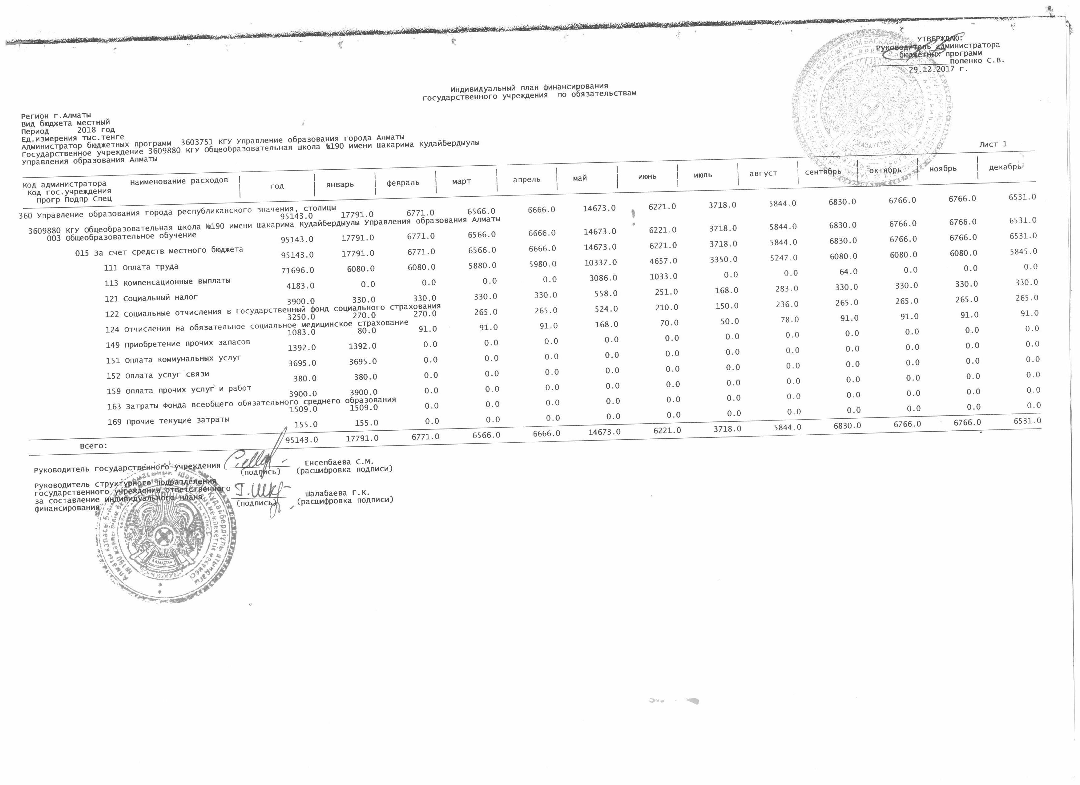 15 қаңтар 2018 0 1 2 3 4 5 Мемлекеттік мекеменің төлемдер бойынша жеке қаржыландыру жоспары 2018 жыл..............Индивидуальный план финансирования государственного учреждения по платежам 2018 год