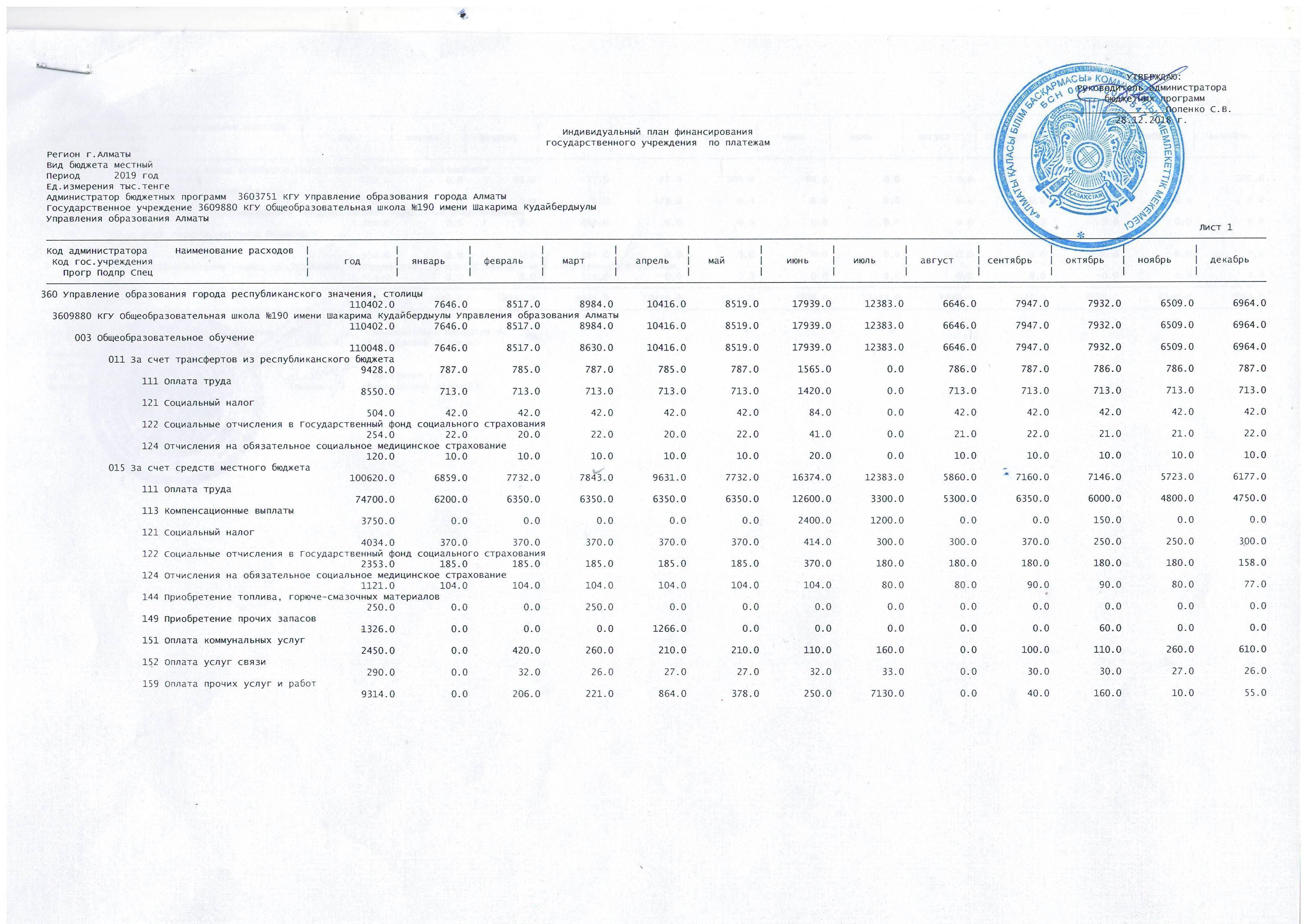 Мемлекеттік мекеменің төлемдер бойынша жеке қаржыландыру жоспары 2017 жыл..............Индивидуальный план финансирования государственного учреждения по платежам 2017 год