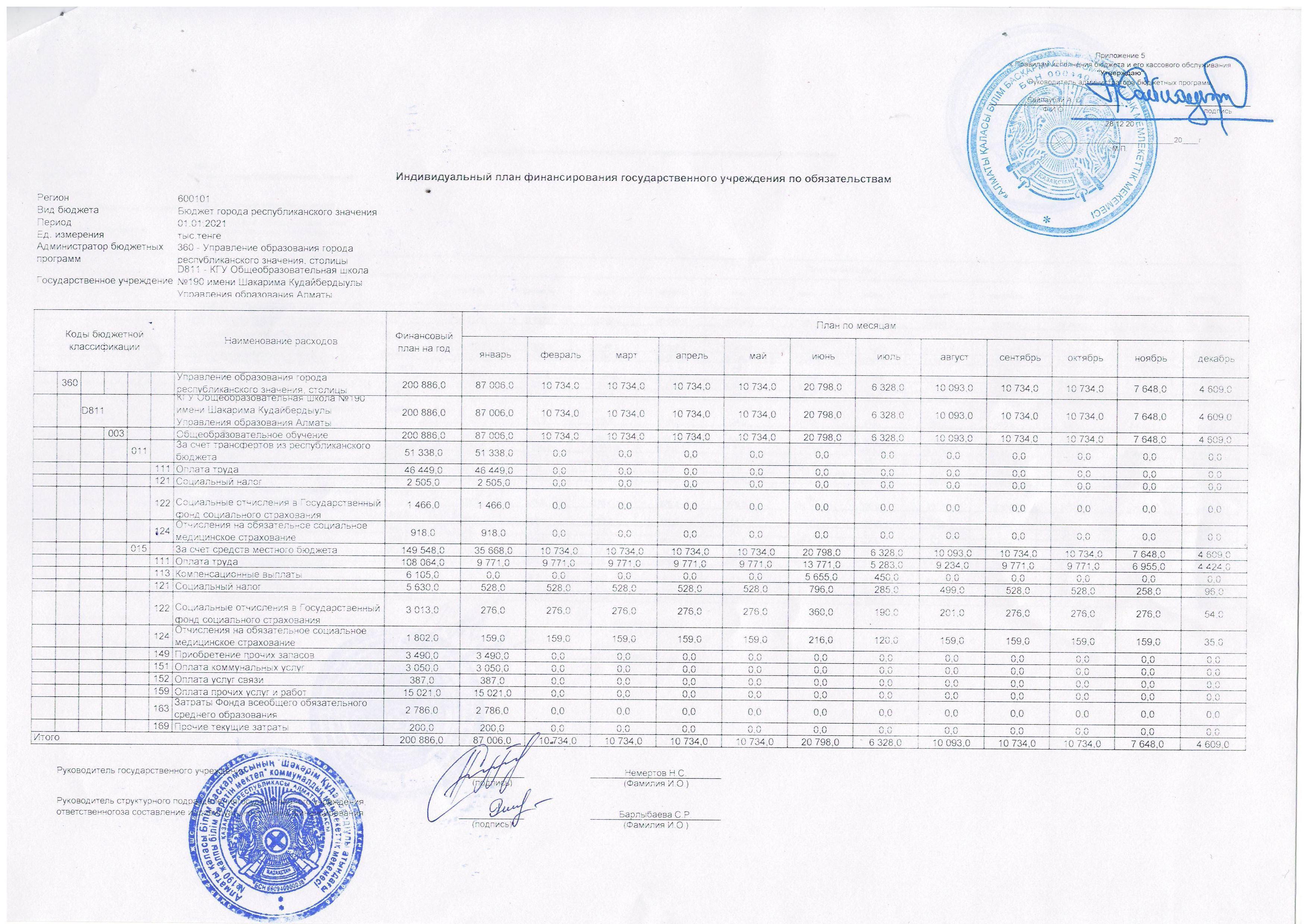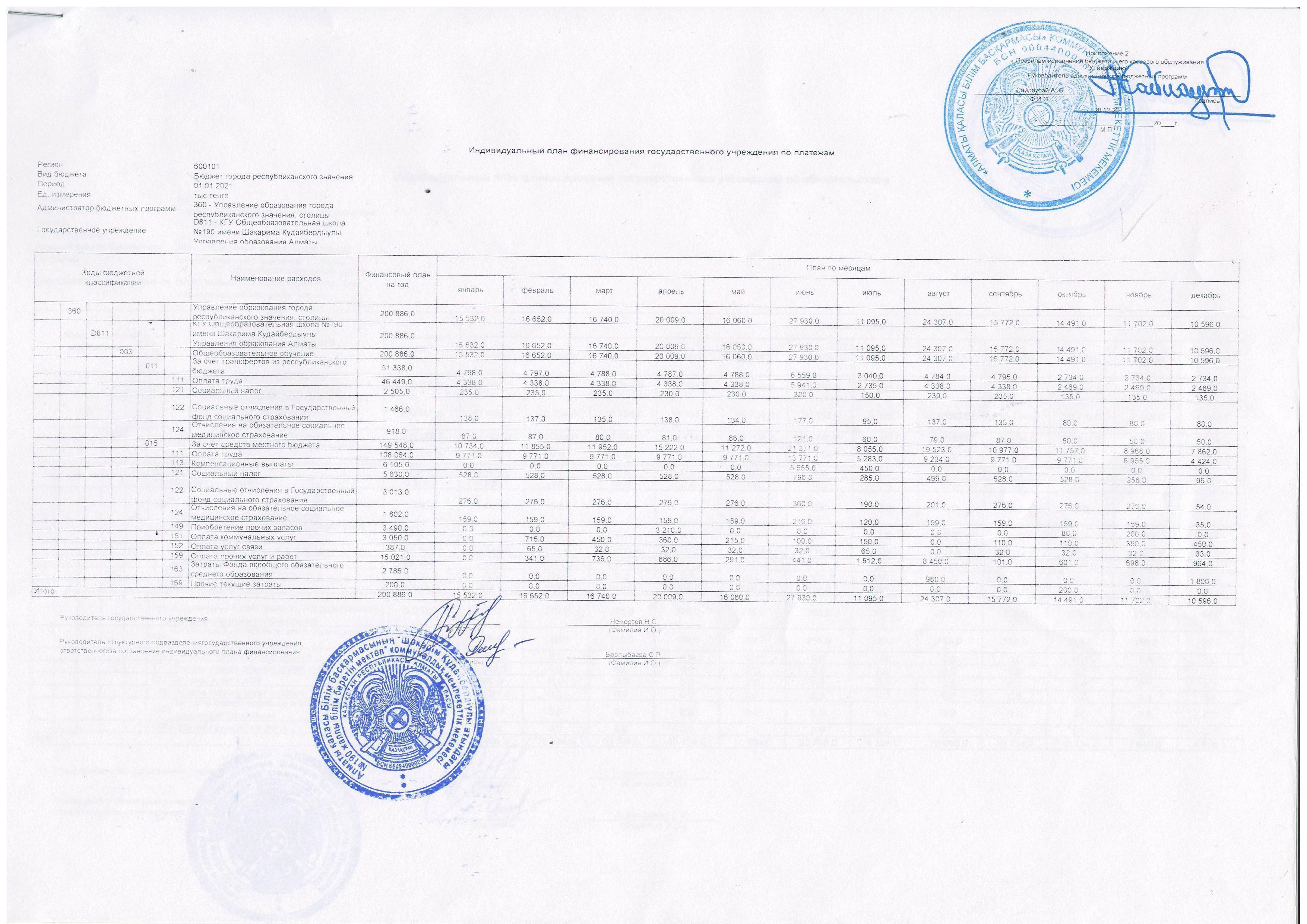 05 қаңтар 2021 0 1 2 3 4 5 Мемлекеттік мекеменің төлемдер бойынша жеке қаржыландыру жоспары 2021 жыл..............Индивидуальный план финансирования государственного учреждения по платежам 2021 год