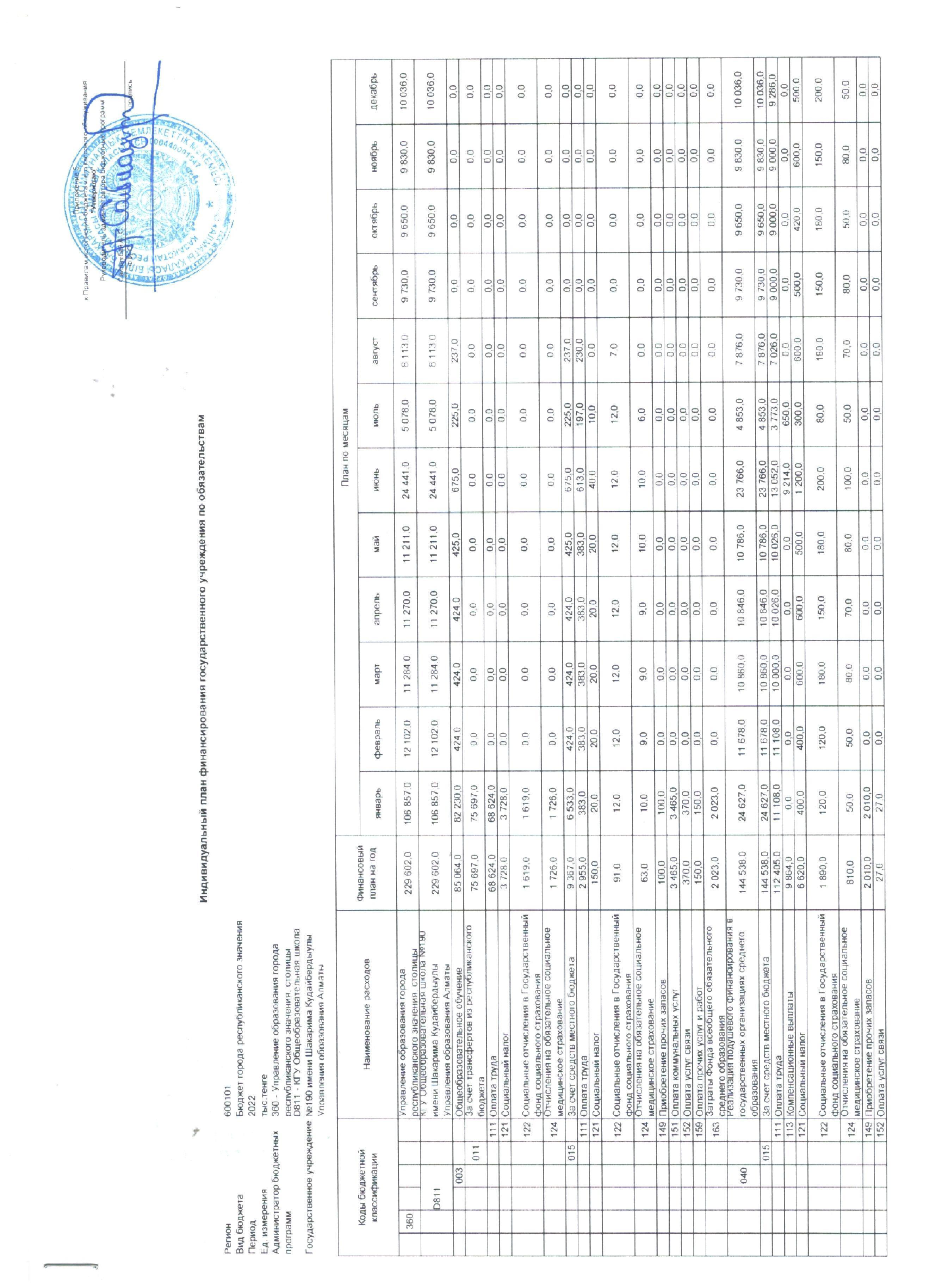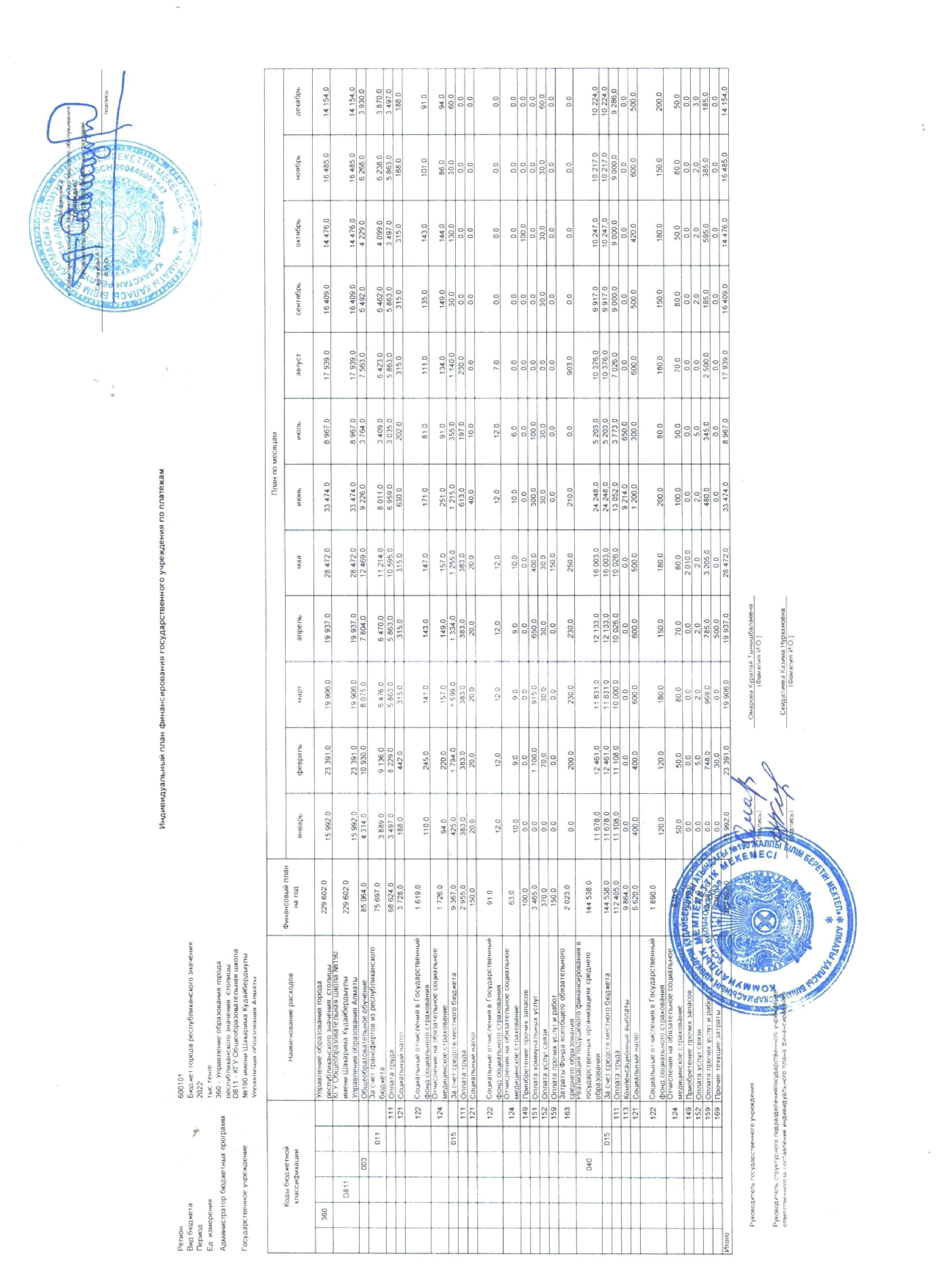 14 қаңтар 2022 0 1 2 3 4 5 Мемлекеттік мекеменің төлемдер бойынша жеке қаржыландыру жоспары 2022 жыл..............Индивидуальный план финансирования государственного учреждения по платежам 2022 год