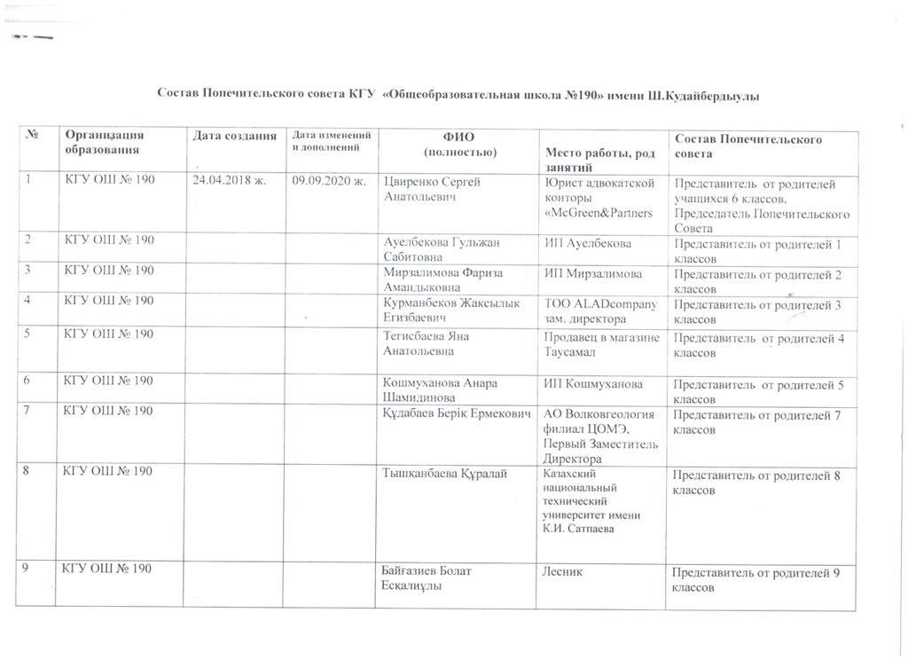 09 қыркүйек 2020 0 1 2 3 4 5 Ш.Құдайбердіұлы атындағы атындағы №190 ЖББМ КММ Қамқоршылық кеңесінің тізімі