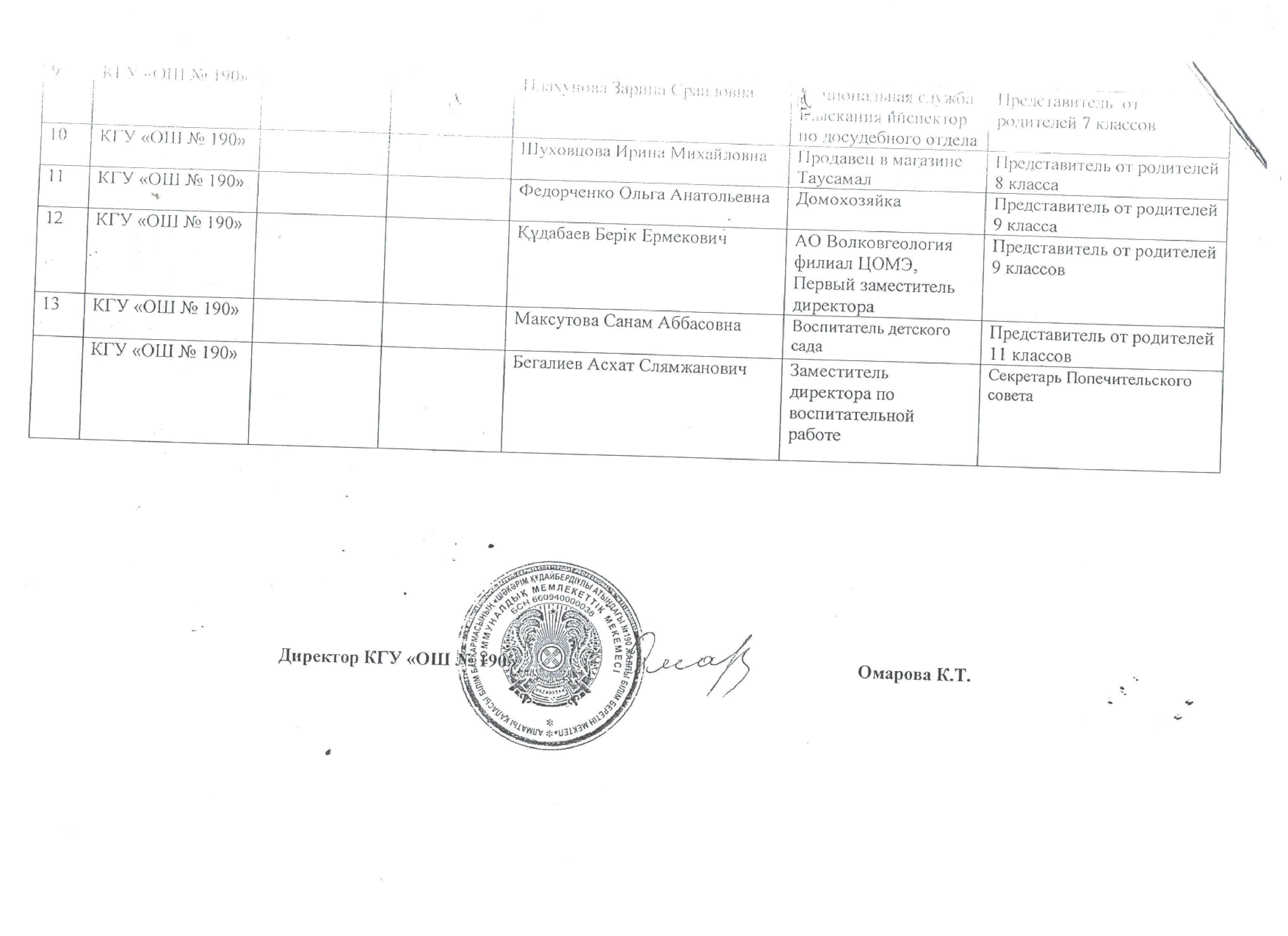 Ш.Құдайбердіұлы атындағы №190 ЖББМ КММ-нің конкурстық комиссиясының №2 хаттамасы