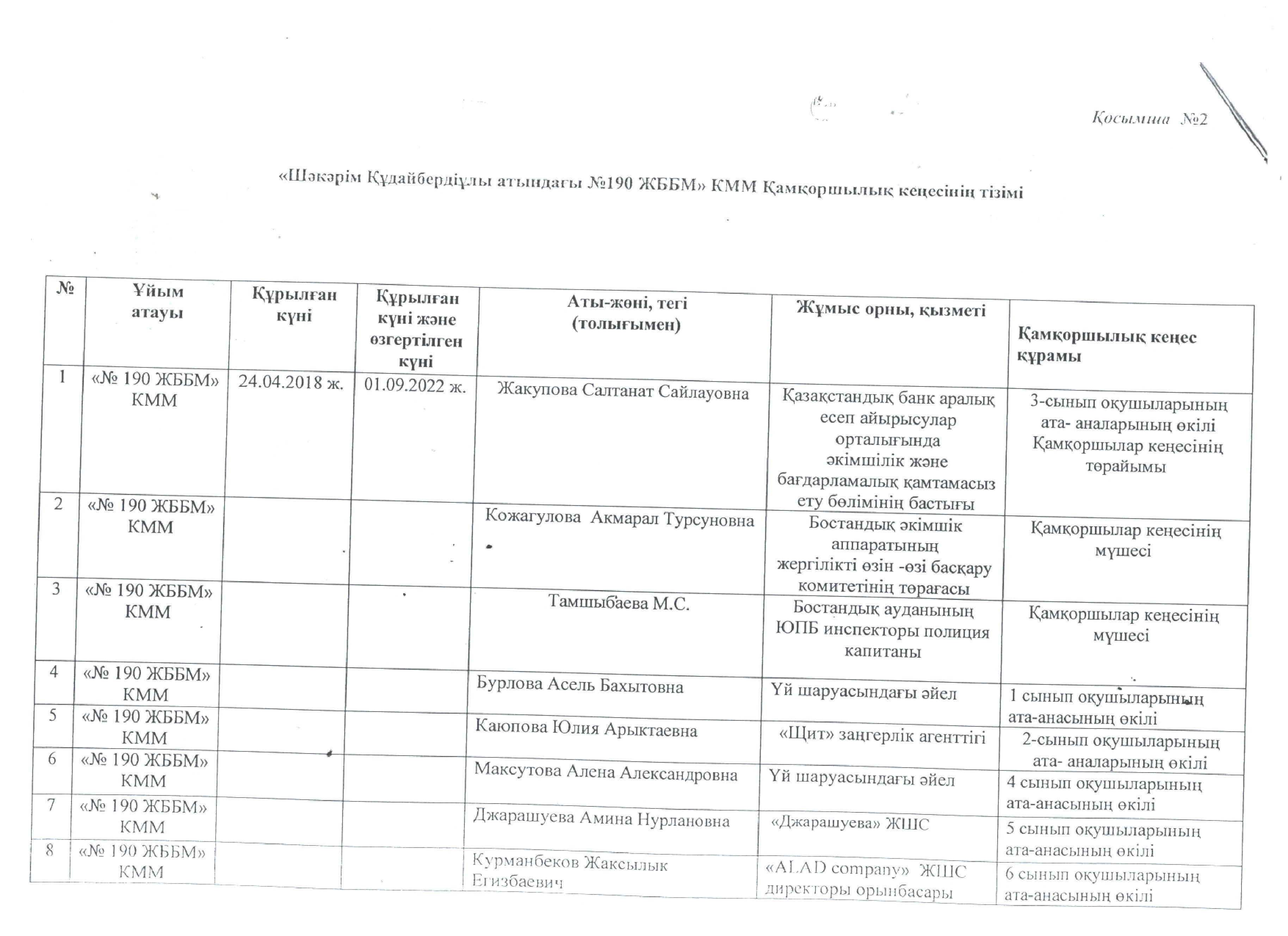 Ш.Құдайбердіұлы атындағы №190 ЖББМ КММ Қамқоршылық кеңес 2022-2023 жыл