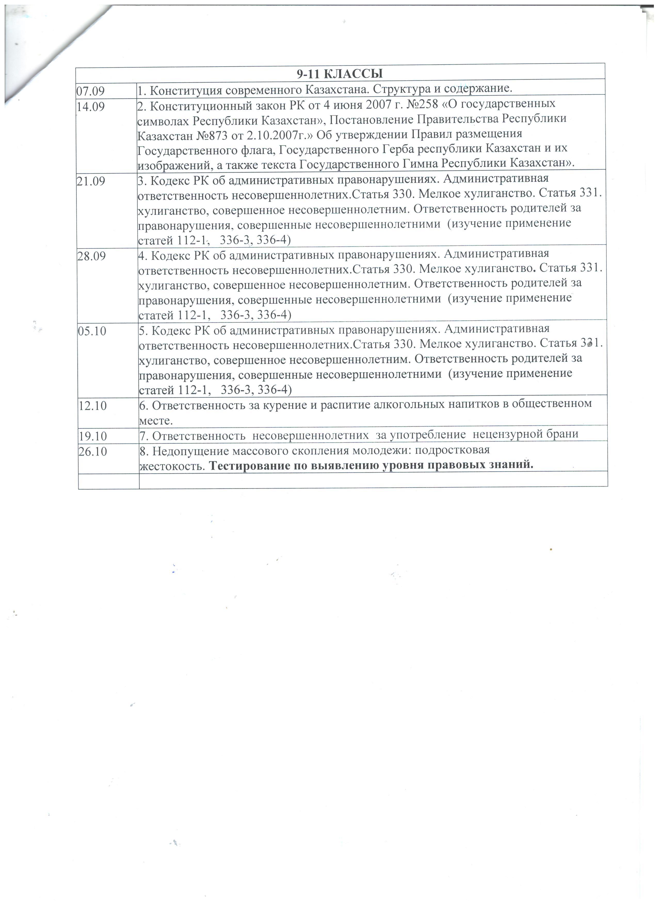 10 қыркүйек 2021 0 1 2 3 4 5 2021-2022 оқу жылына 1-11 сынып оқушыларына құқықтық жалпыға бірдей оқыту бойынша сабақтарды күнтізбелік-тақырыптық жоспарлау