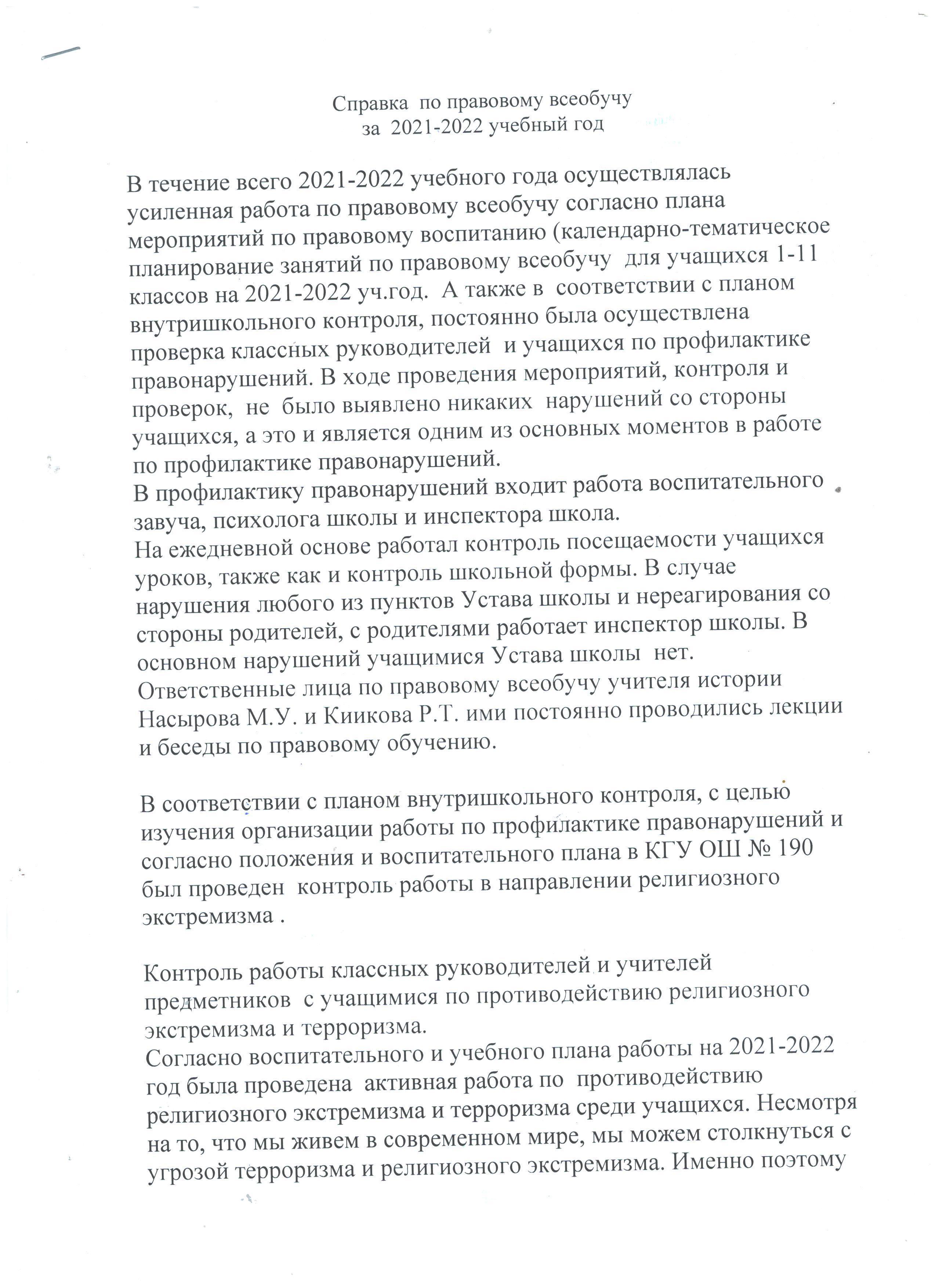 25 мамыр 2022 0 1 2 3 4 5 2021-2022 оқу жылына құқықтық жалпы оқыту бойынша анықтама........................Справка по правовому всеобучу за 2021-2022 учебный год