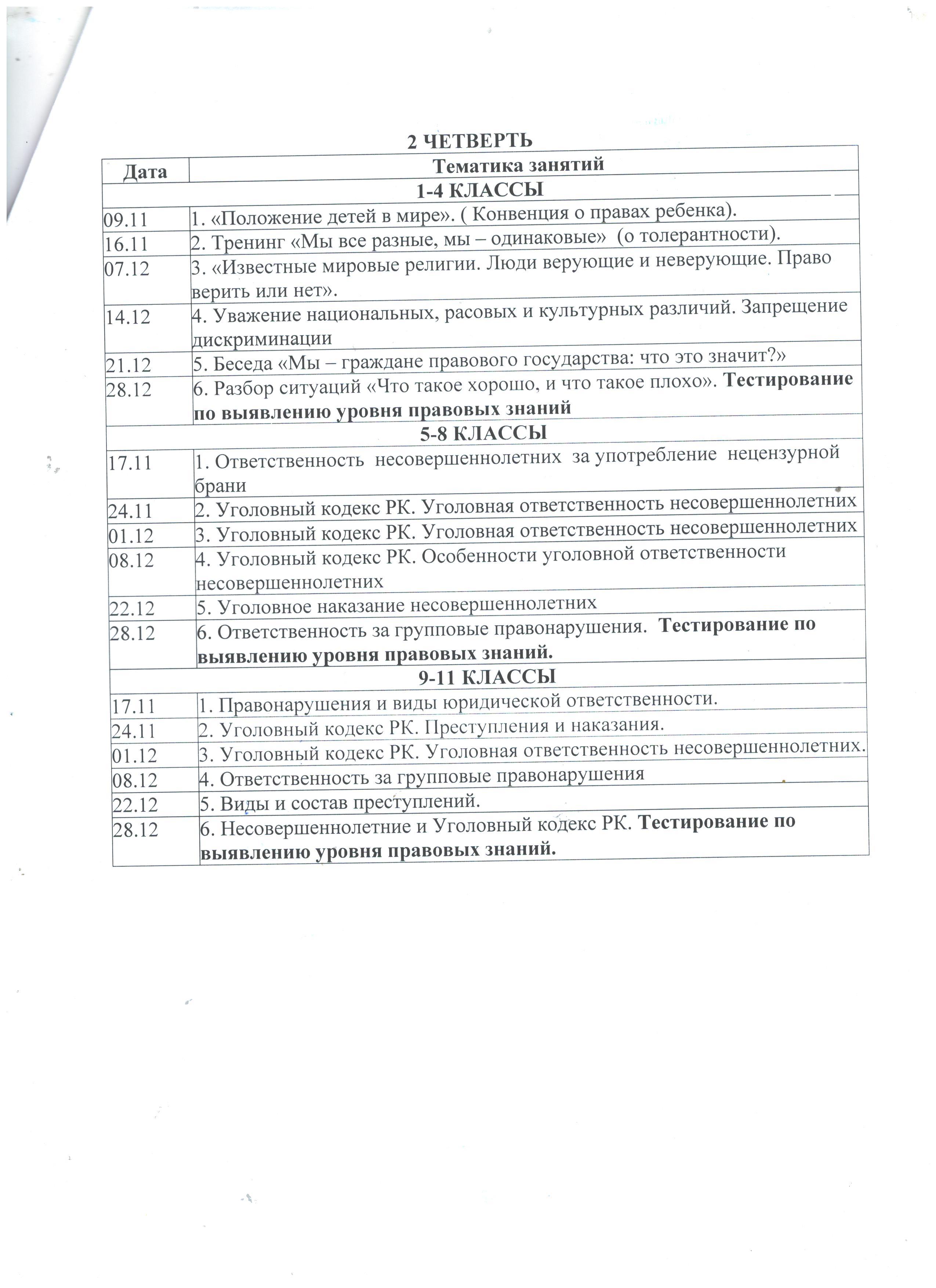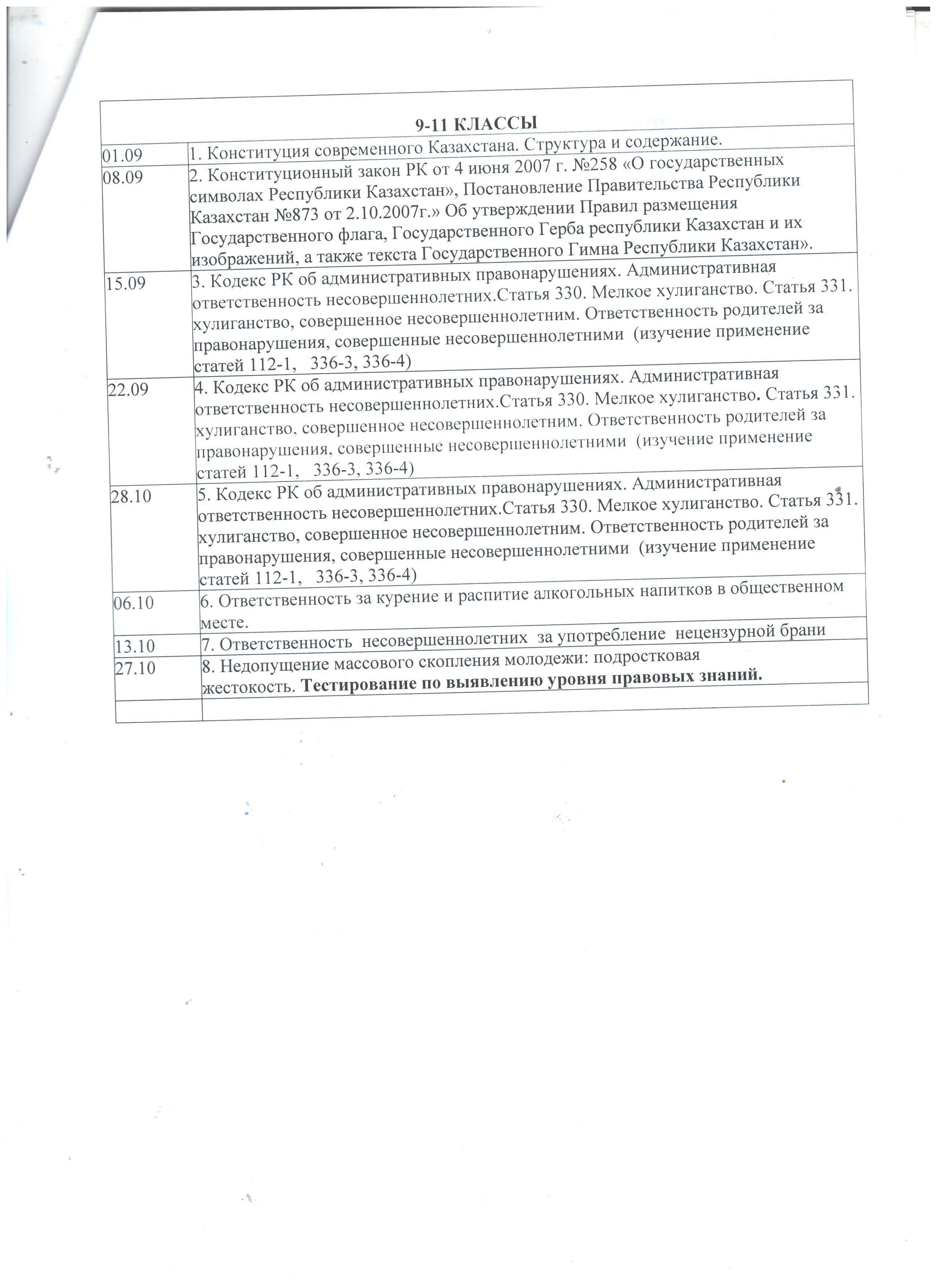 10 қыркүйек 2020 0 1 2 3 4 5 2020-2021 оқу жылына 1-11 сынып оқушыларына құқықтық жалпыға бірдей оқыту бойынша сабақтарды күнтізбелік-тақырыптық жоспарлау