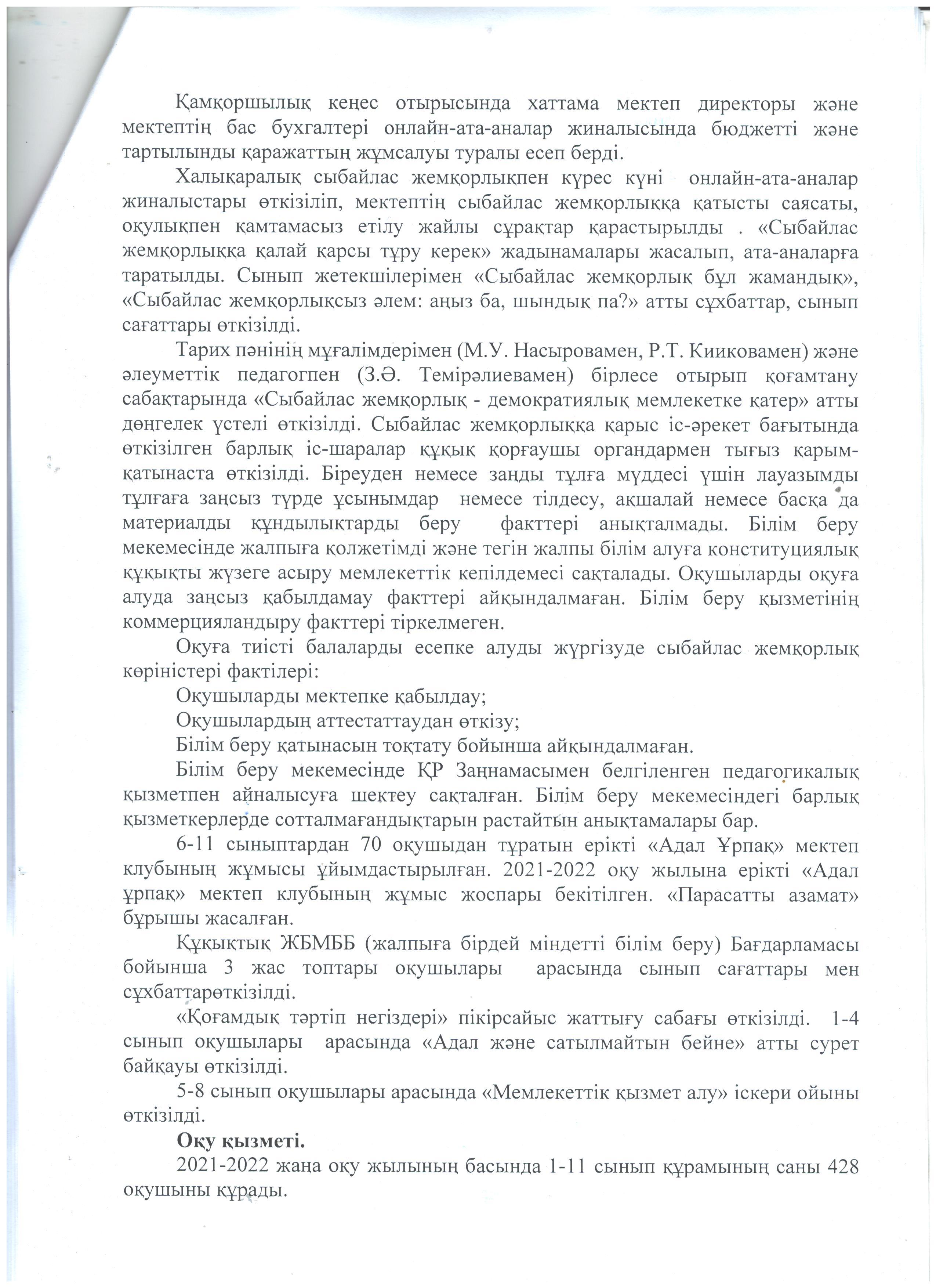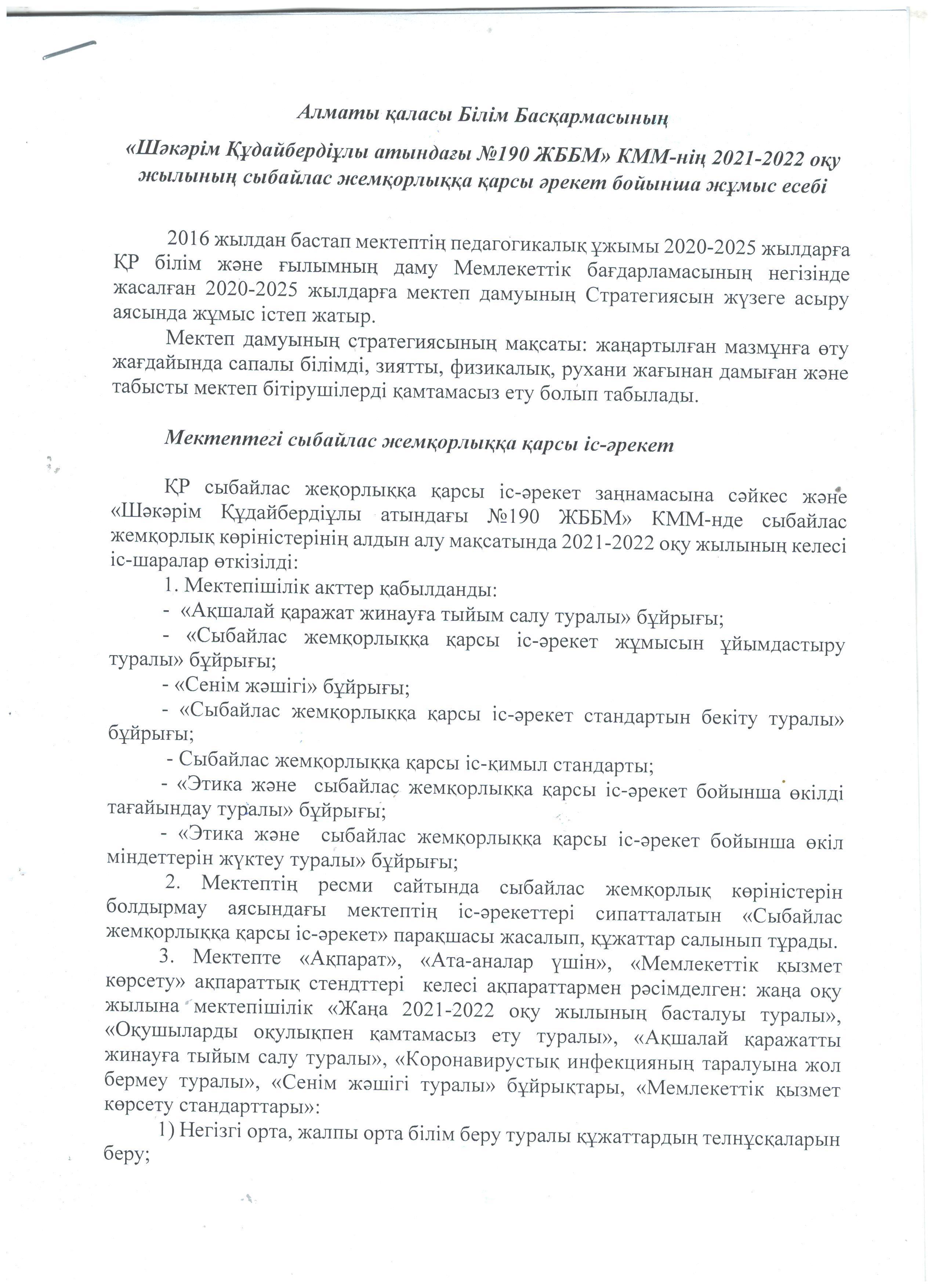 20 мамыр 2022 0 1 2 3 4 5 №190 ЖББМ КММ 2021-2022 оқу жылының сыбайлас жемқорлыққа қарсы әрекет бойынша жұмыс есебі
