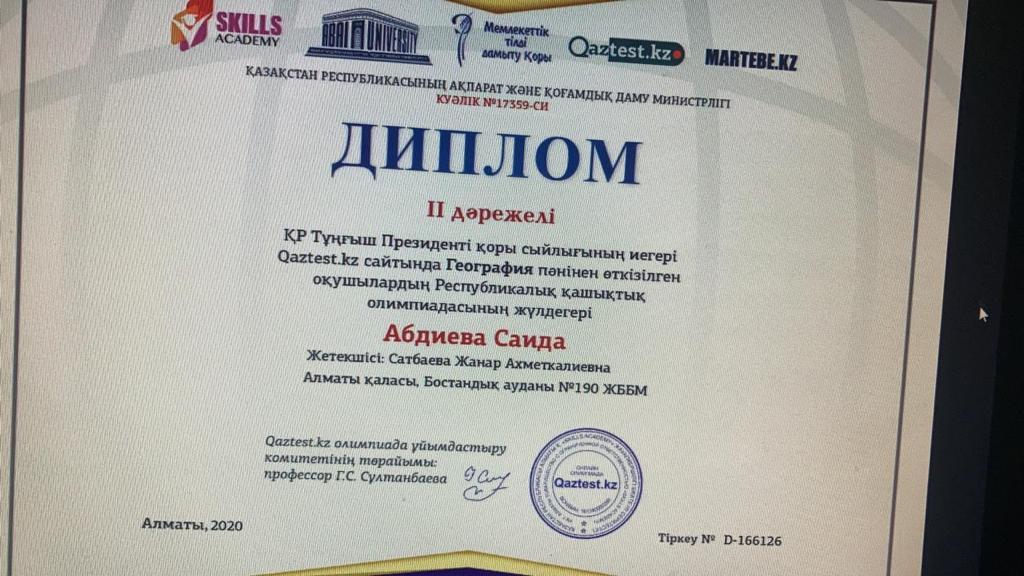 Алматы қаласы Білім басқармасының Ш.Құдайбердіұлы атындағы "№190 жалпы білім беретін мектеп" коммуналдық мемлекеттік мекемесі