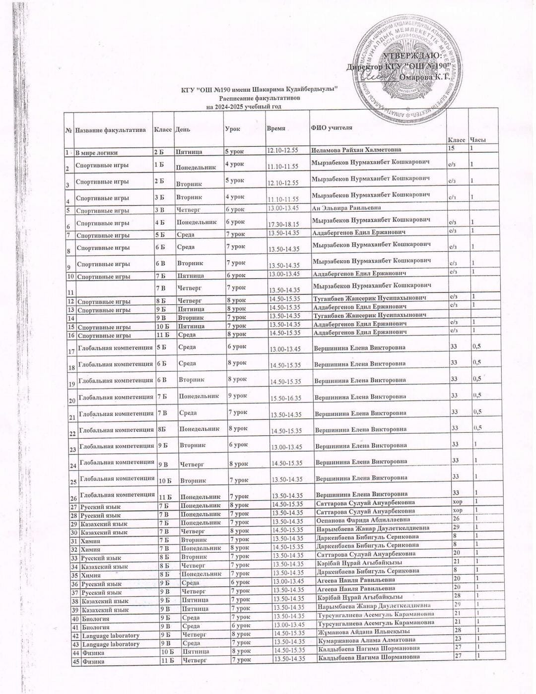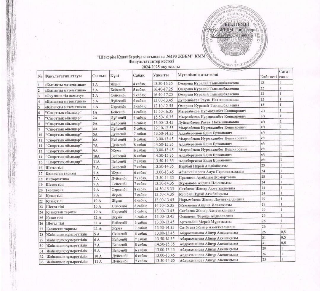 02 қыркүйек 2024 0 1 2 3 4 5 Факультатив кестесі / Расписание факультативов 2024-2025 жж. Факультатив кестесі / Расписание факультативов 2024-2025 жж.