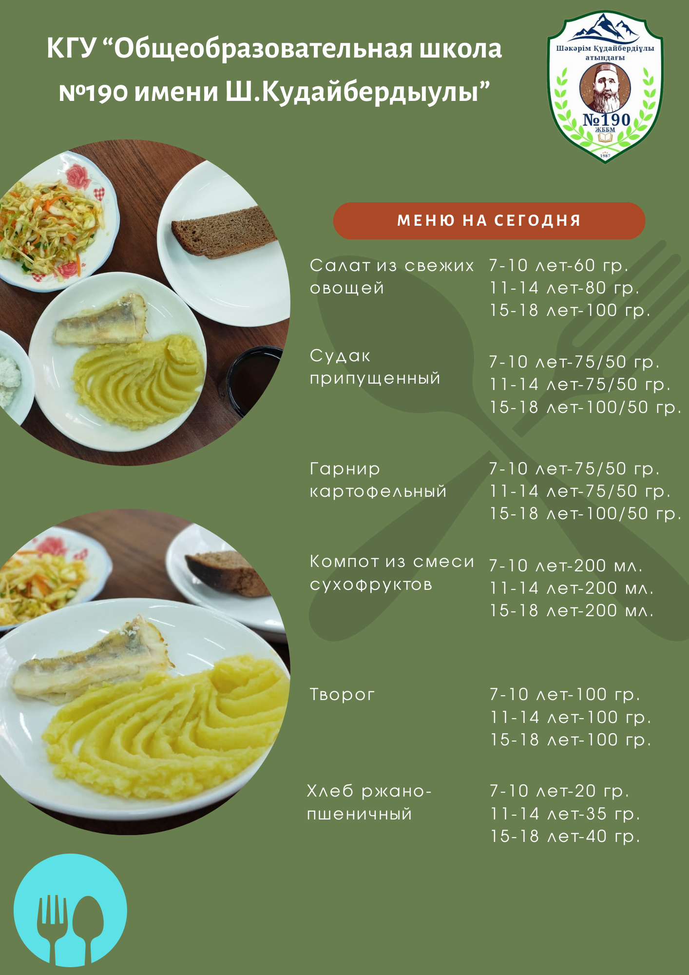 Ас мәзірі 3 апта 4 күн.........................Меню 3 неделя 4 день