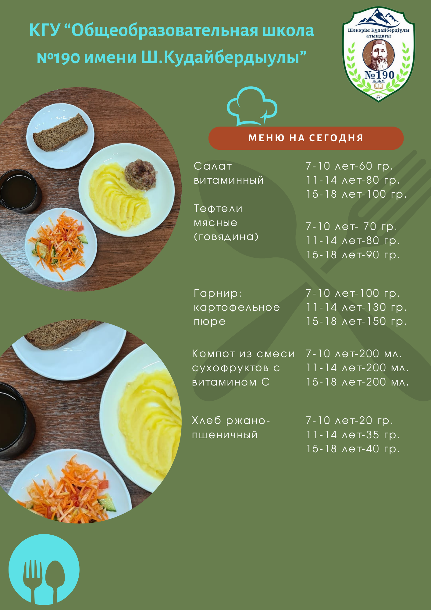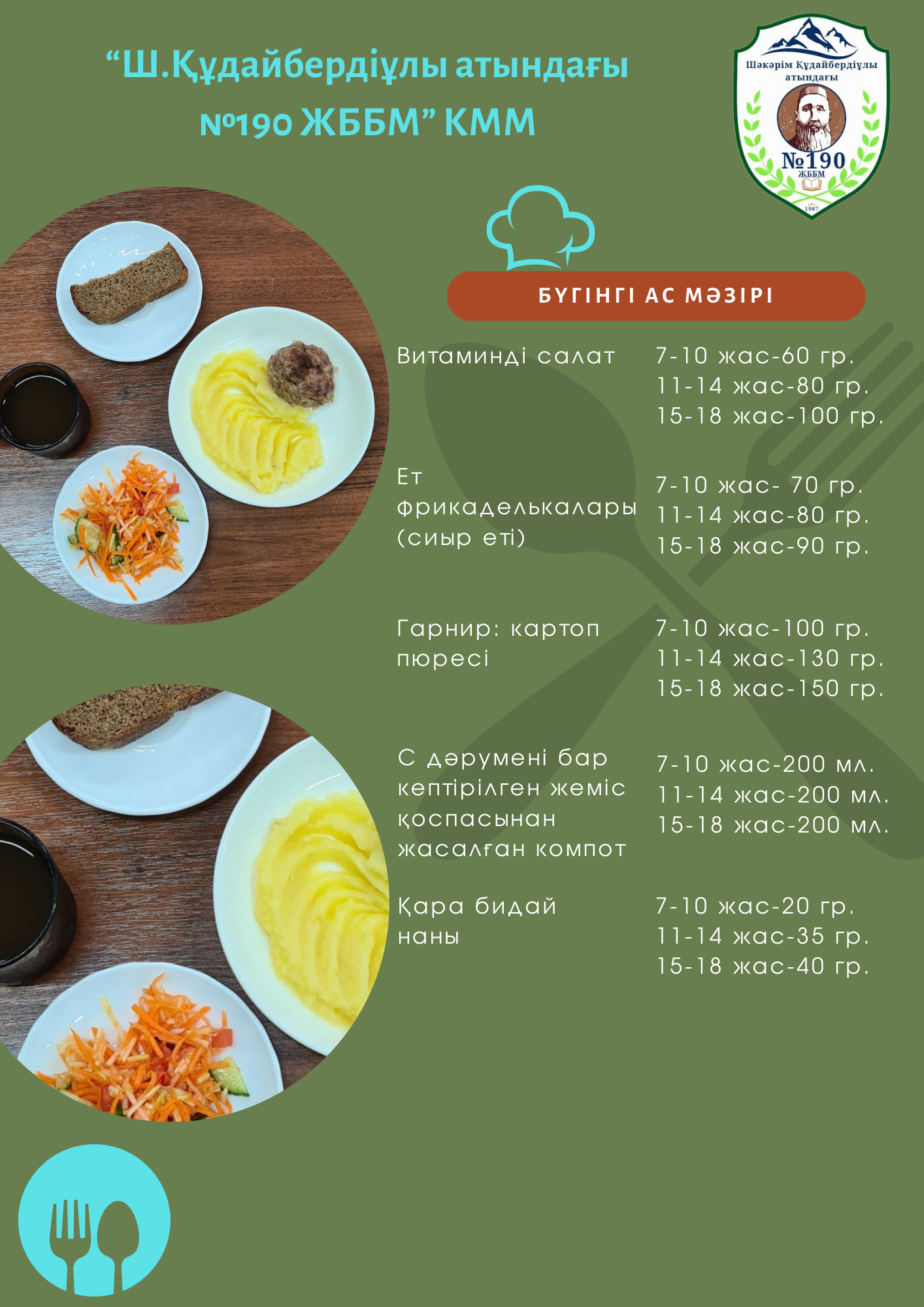 Ас мәзірі 3 апта 4 күн.........................Меню 3 неделя 4 день