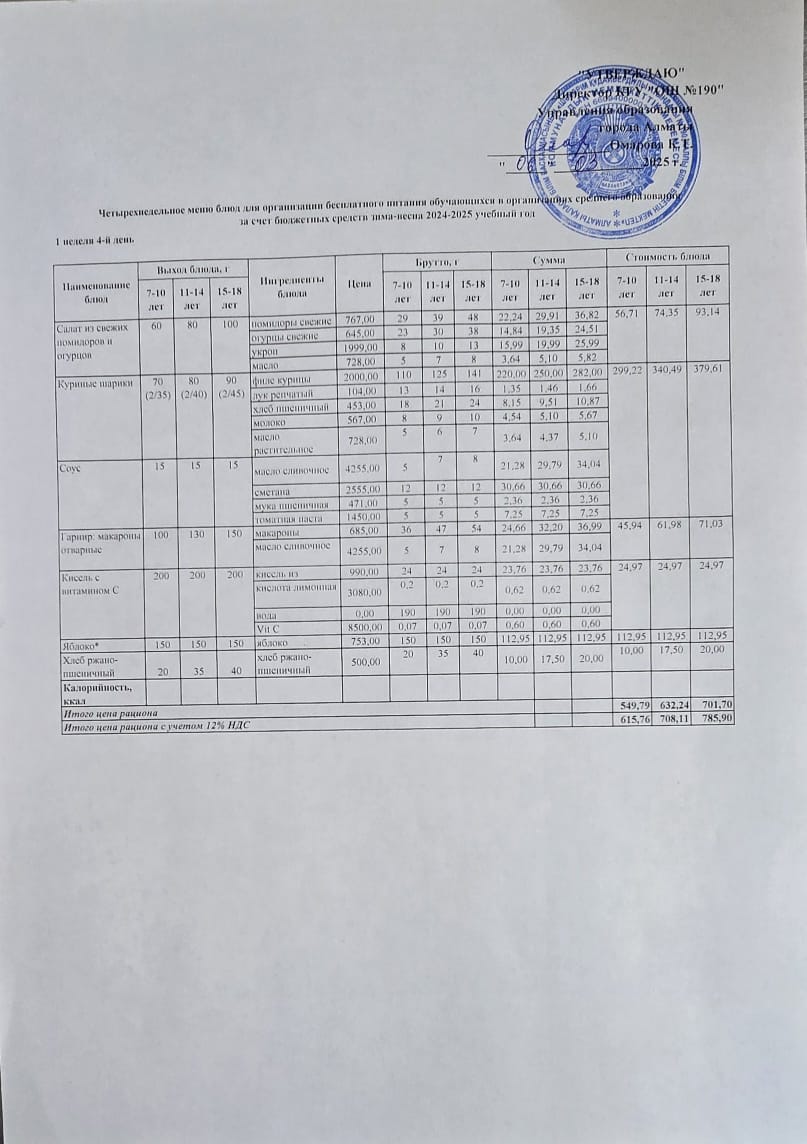 Меню 2 апта 2 күн... Меню 2 неделя 2 день