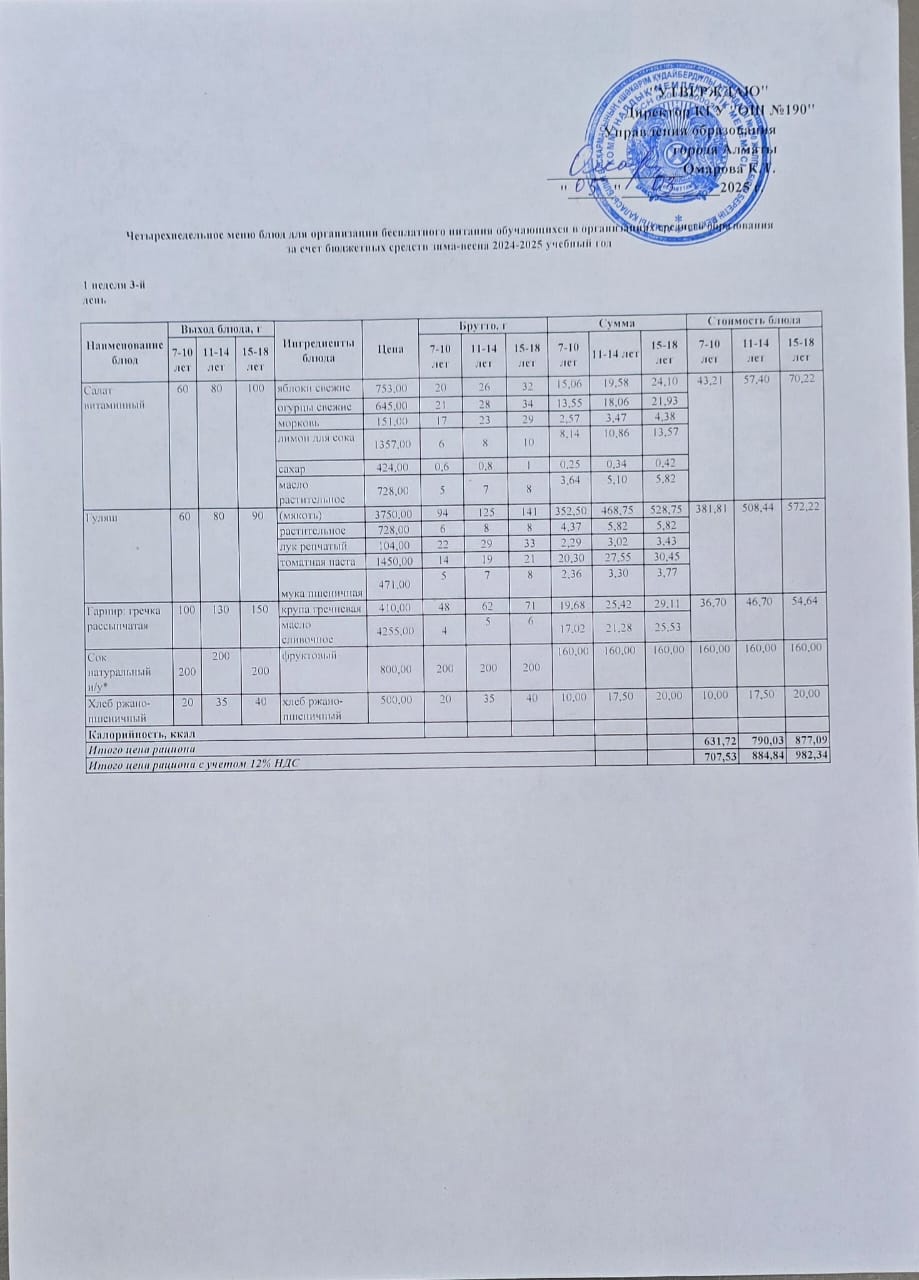 2 апта 4 күн... Меню 2 неделя 4 день