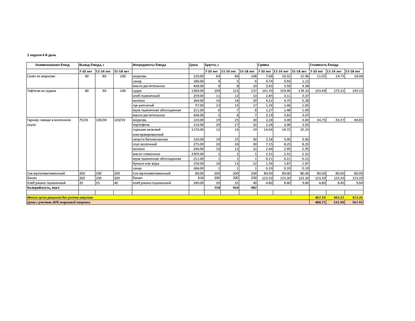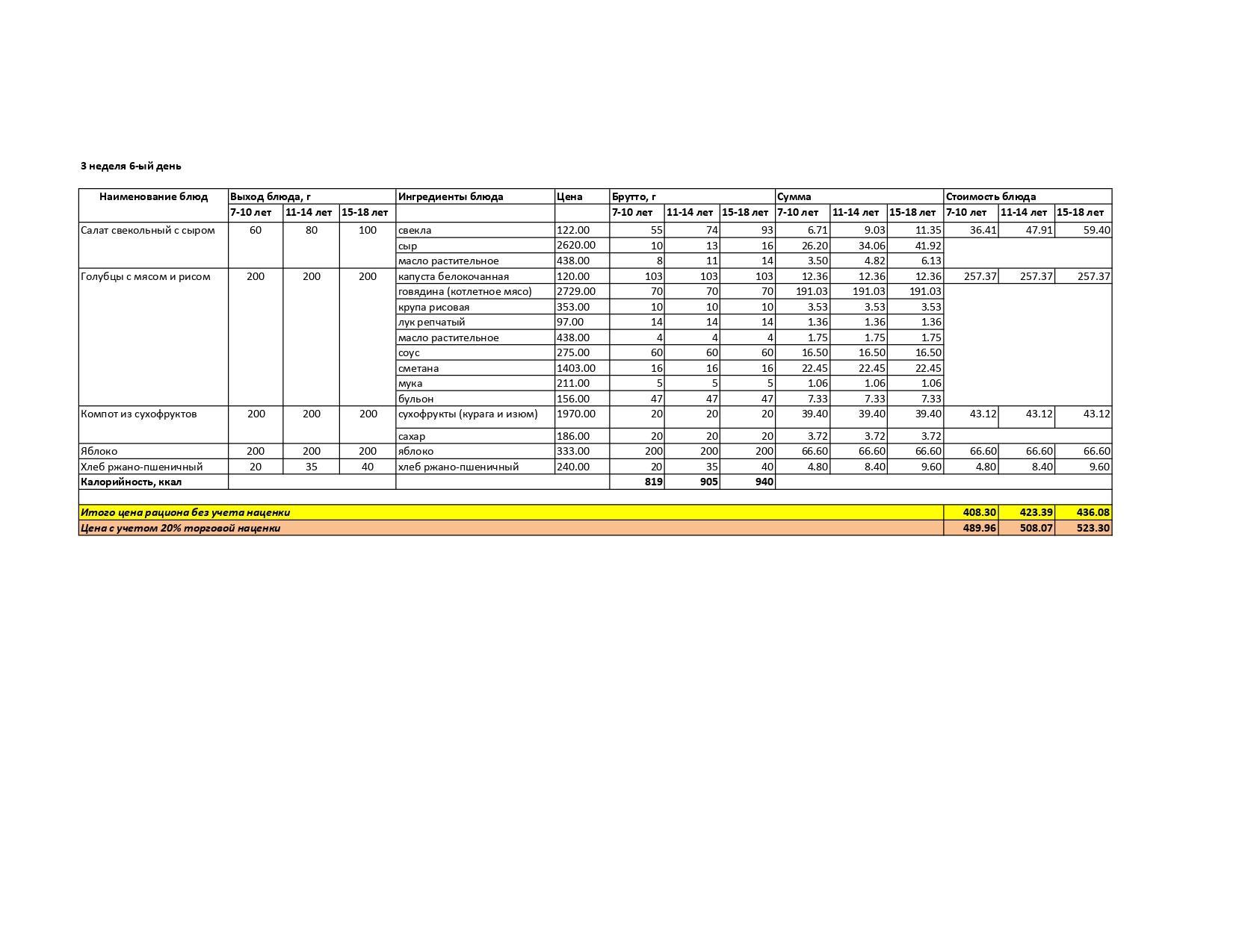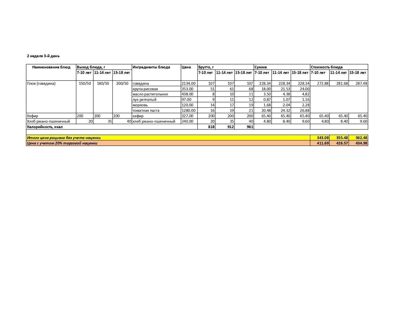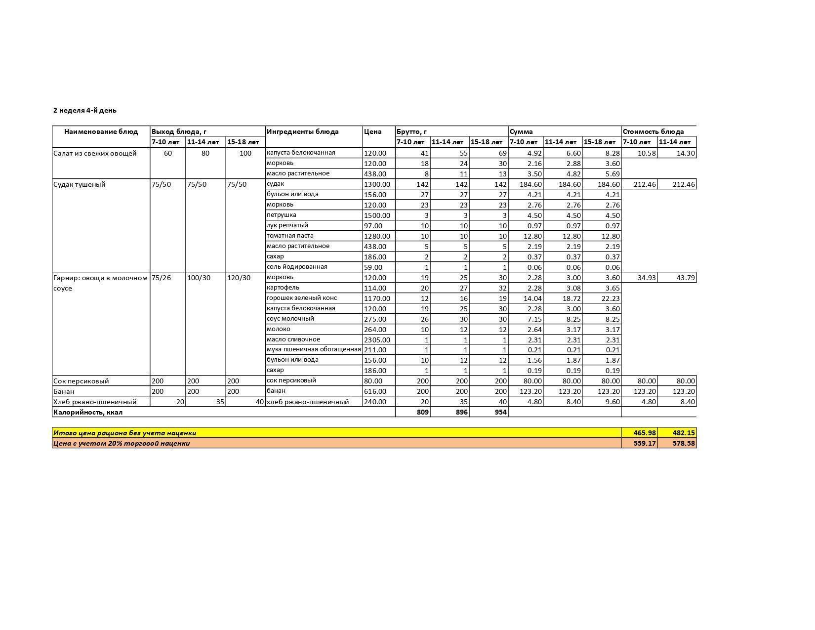 Меню лето-осень