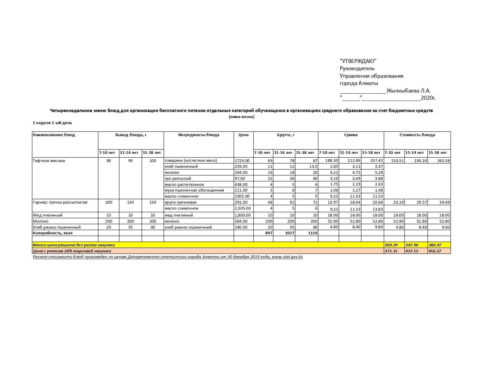 2021-2022 жылдарға арналған Қыс-Көктем мәзірі 1 тағаммен және сузбешемен