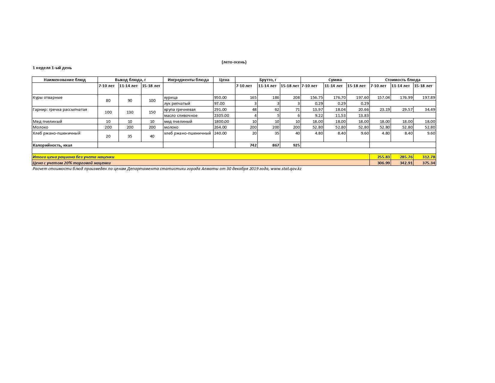 2021-2022 жылдарға арналған 1 тағам мен сузбешеі бар жаз-күз мәзірі