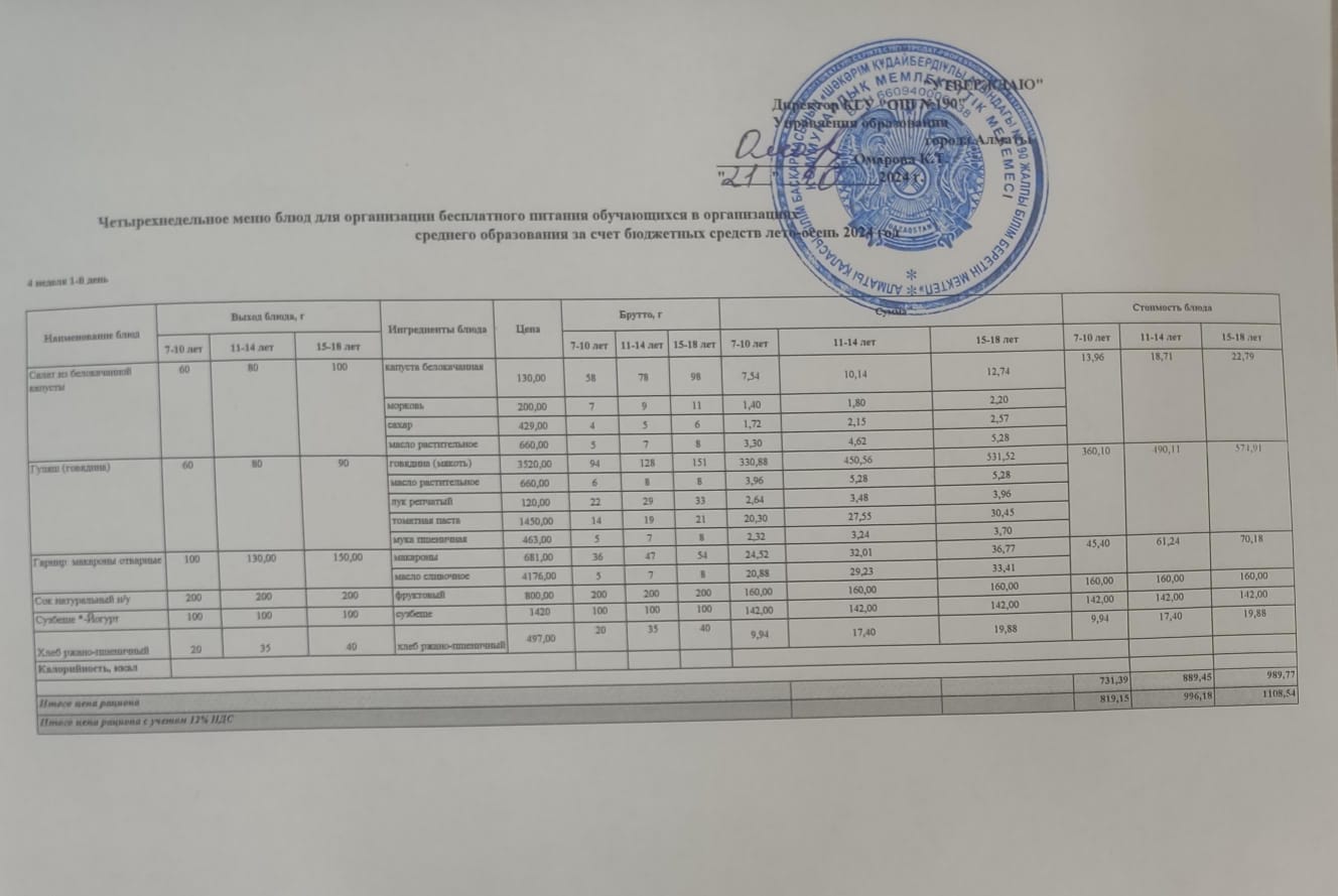 » 4 апта 1 күн... Меню 4 неделя 1 день