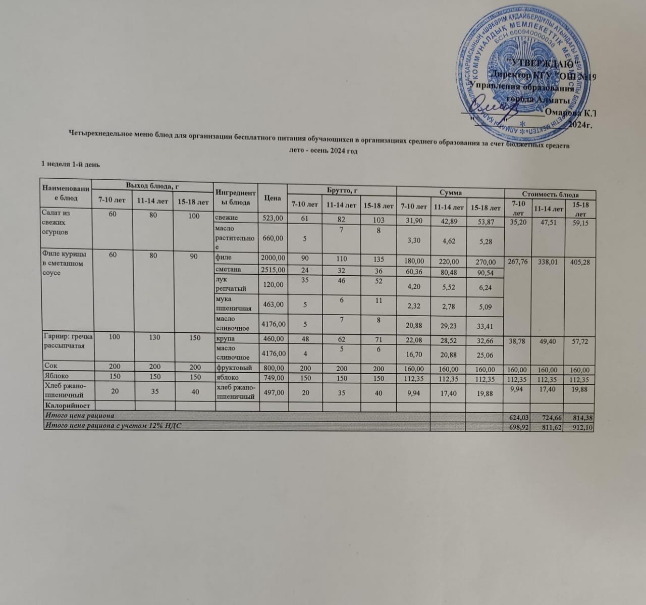 Меню 2 апта 2 күн... Меню 2 неделя 2 день