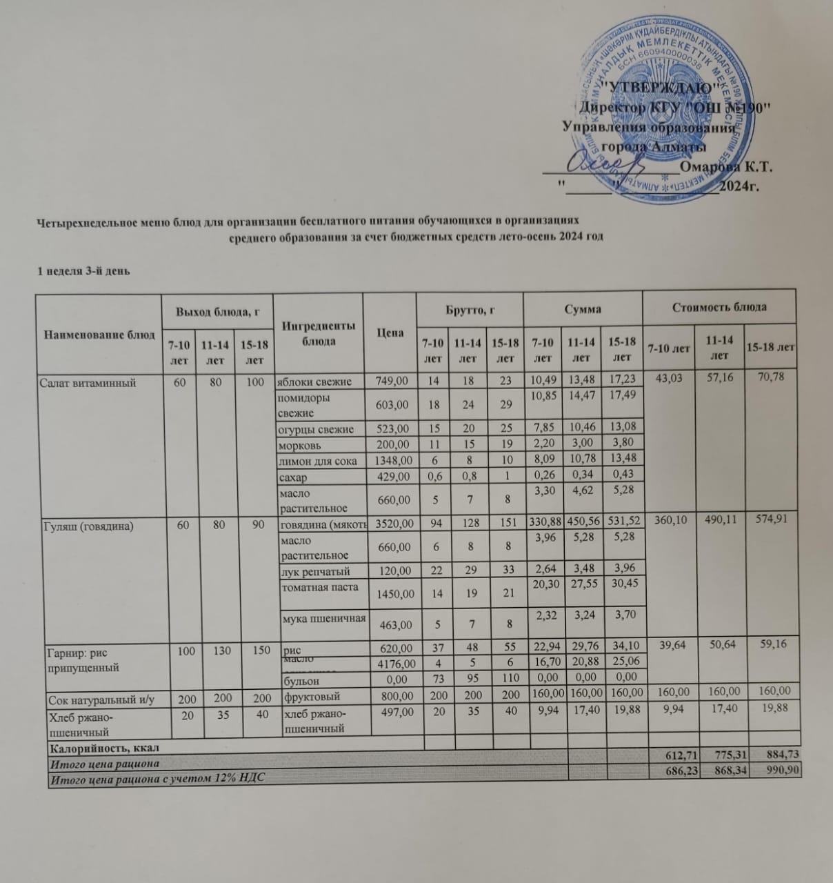 2 апта 4 күн... Меню 2 неделя 4 день