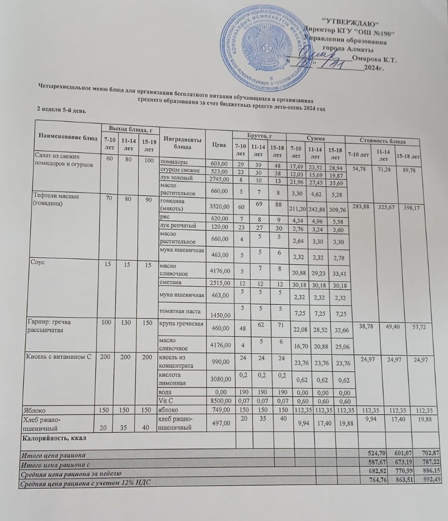 Меню 2 апта 2 күн... Меню 2 неделя 2 день