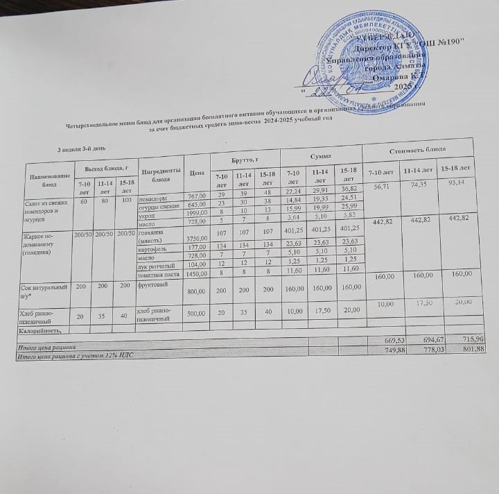 Меню 2 апта 2 күн... Меню 2 неделя 2 день