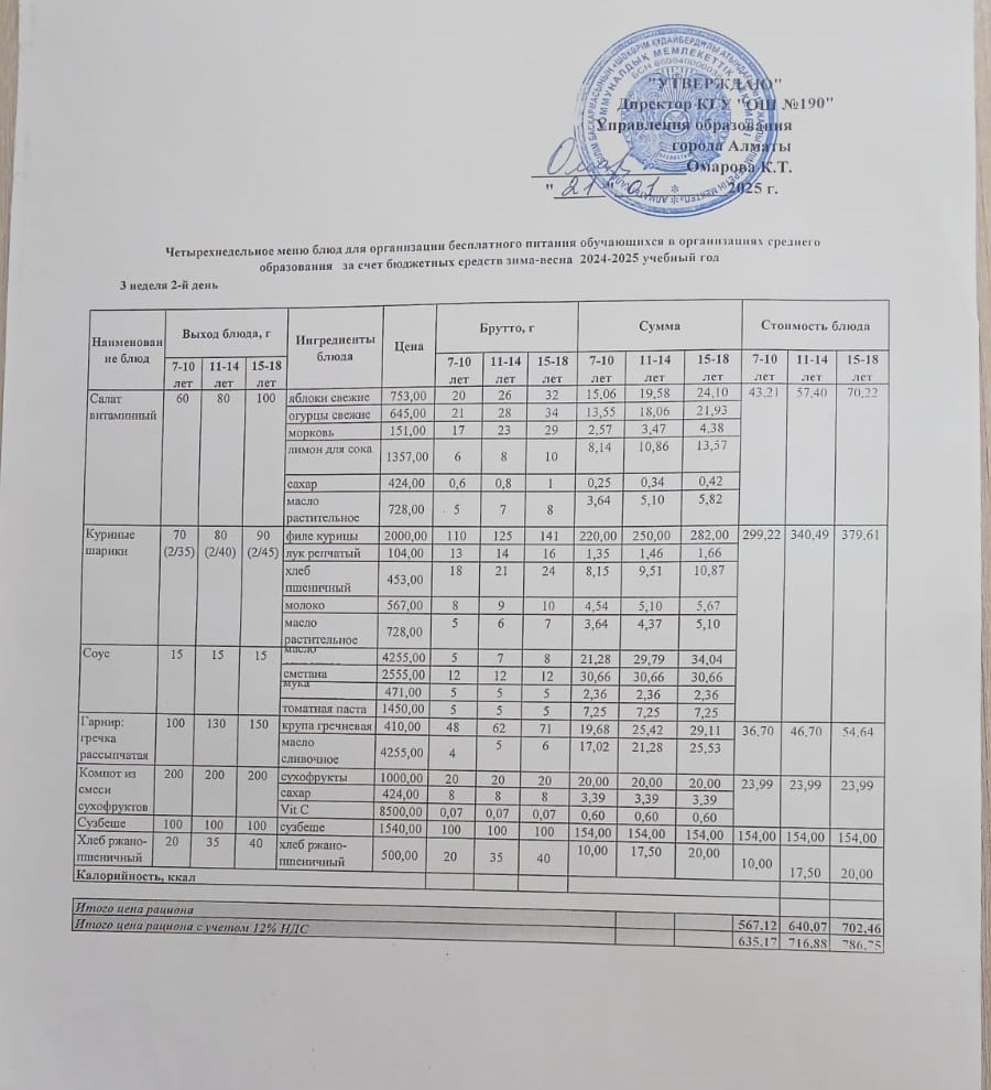 Меню 2 апта 2 күн... Меню 2 неделя 2 день