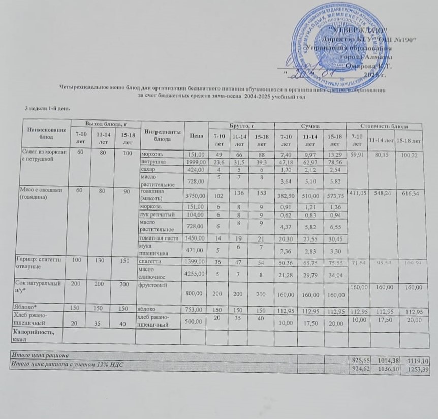 Меню 4 апта 3 күн