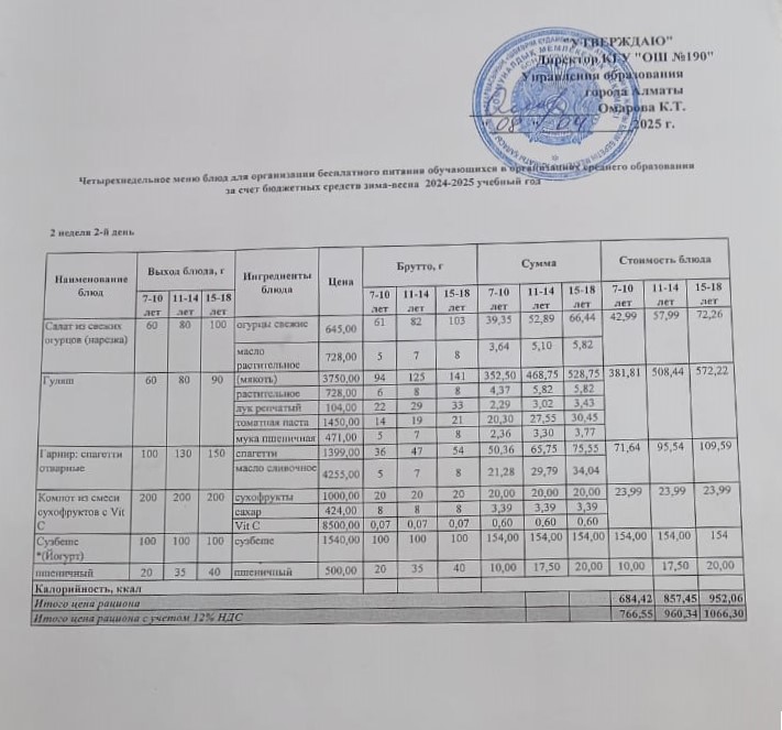 Меню 2 апта 2 күн... Меню 2 неделя 2 день