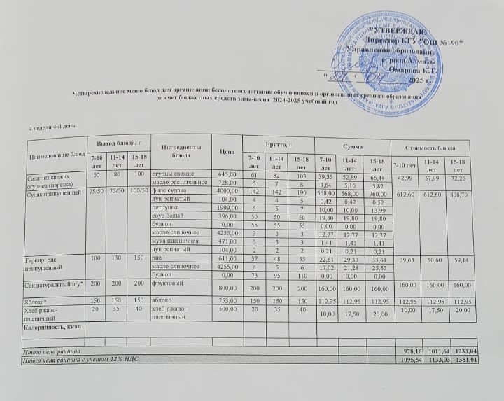 Меню 2 апта 2 күн... Меню 2 неделя 2 день