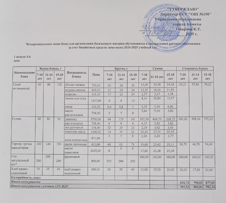 Меню 2 апта 2 күн... Меню 2 неделя 2 день